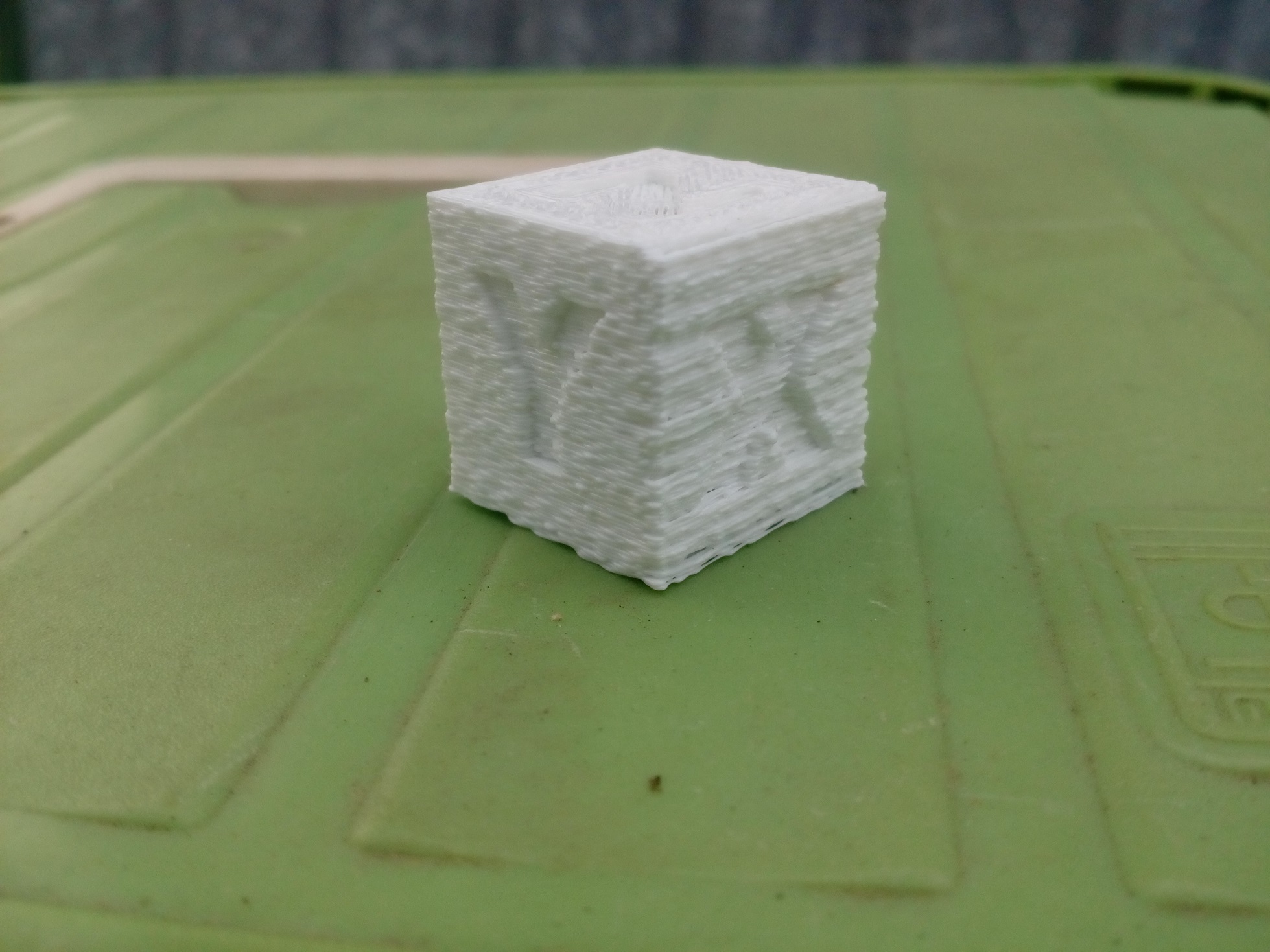 Ahoj. Vytiskl jsem svou první kalibrační kostku. Tisk se celkem povedl, ale stejně to není, co bych si přál. Všechny strany jsou celkem ok, ale strana s písmenem X je hodně hrubá, jakoby byly posunuté vrstvy, ale ale protější strana je rovná. Nedokážu posoudit, co mám špatně.