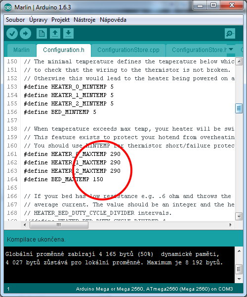 Pokud to nastavení teploty není zamknutý ještě v jiný záložce ,tak fakt nevím kde to ještě mám přepsat aby dokázal jen na LCD sdruženém s SD a Controlerem mu zadat natopení na větší teplotu ( největší číslo které controler zná je 260 ) .
