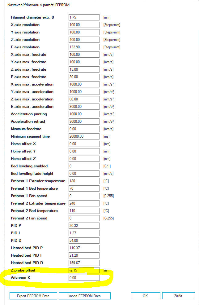 Ty jo, fakt netuším pod čím mám tu konstantu v eeprom vidět. Moje nastavení eeprom v příloze, každopádně zítra vyzkouším tu druhou variantu a dám vědět jak jsem dopadl.