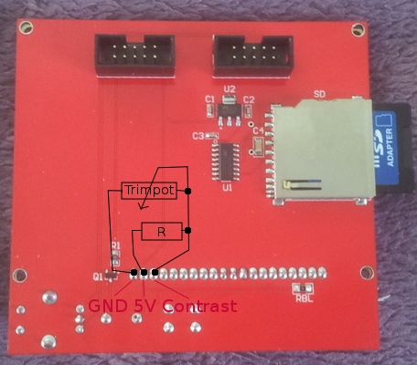 Jinak stačí přídat odpor 2 kila mezi piny contrast a gnd: