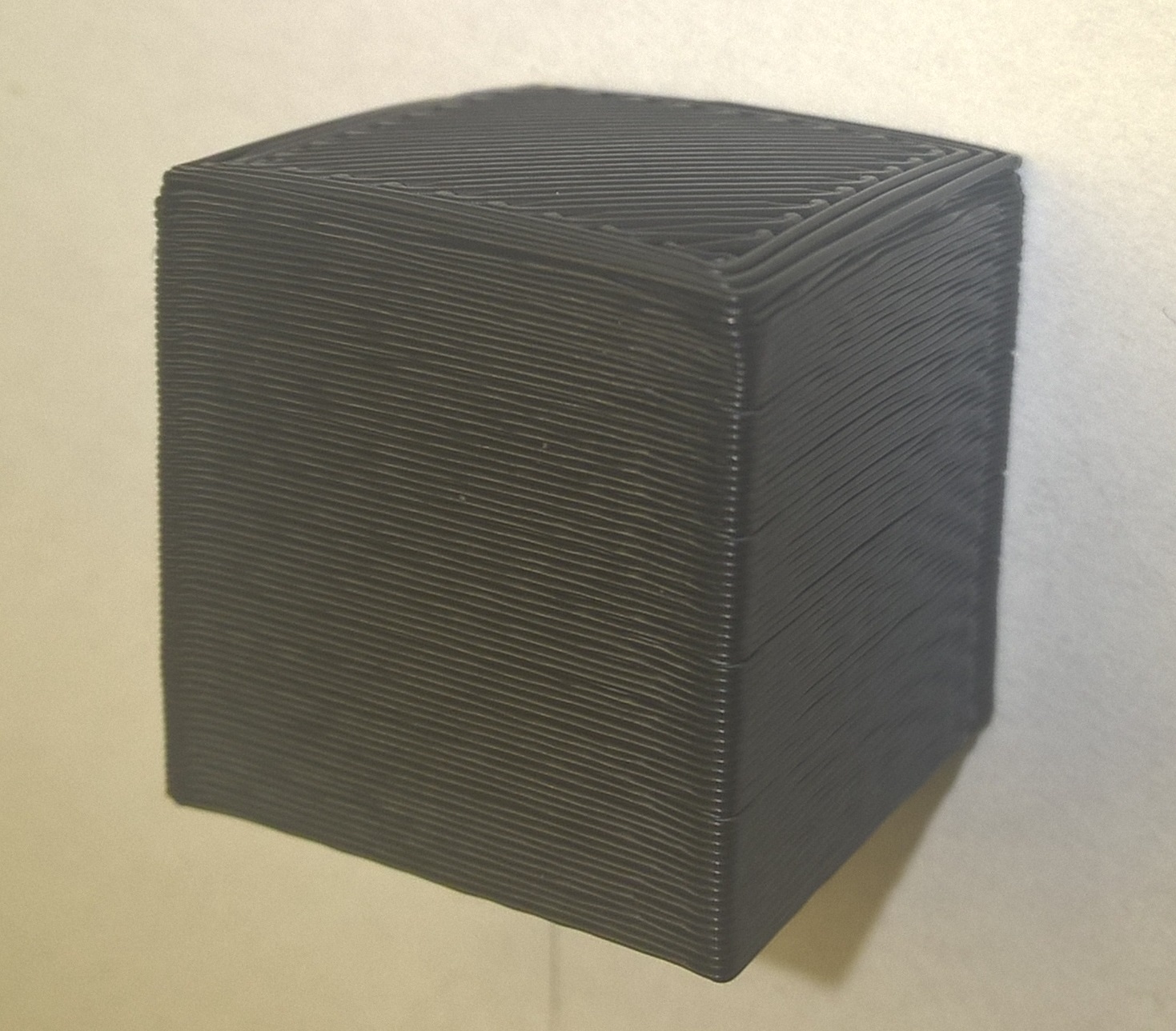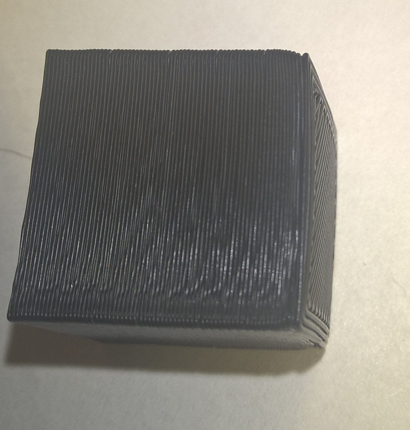 Druhý tisk dopadl také pěkně dokonce už to má i rozměry blížící se modelu, ale první vrstvy nejsou ideální... Asi se nespojí a pak i ty ostatní by to chtělo tročku blíže k sobe. Kam sáhnout? Ve sliceru mám výšku první vrstvy 0.35, ostatní 0.3. Tryska je 0.4. Díky