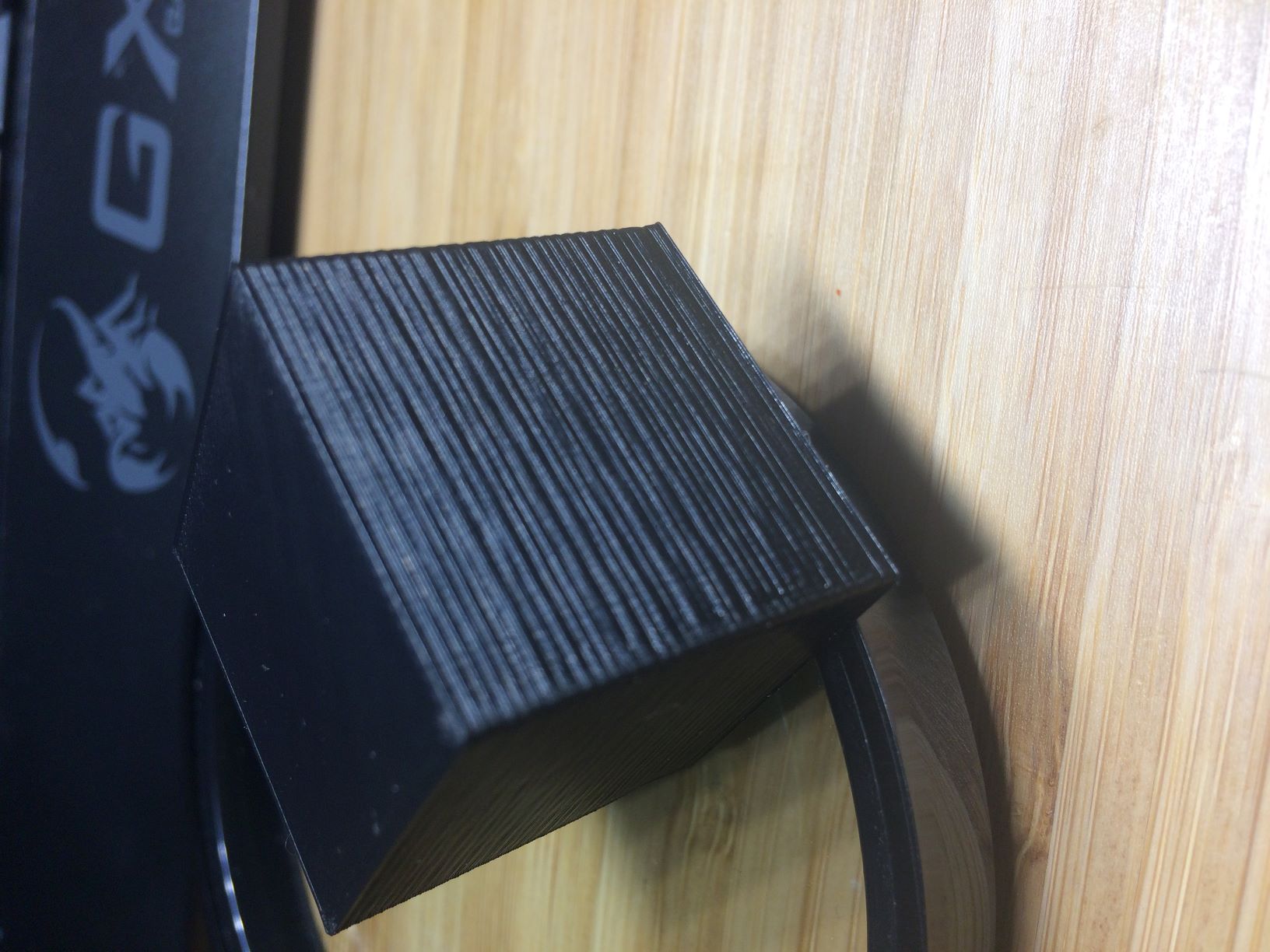Nebo ti to dělá osa X, Y (závitová tyč je křivá nebo křivě upevněná k motoru a moc napevno, při otáčení posunuje trysku vůči stolu do strany) - pak to bude spíš vypadat jako posunutí vrstev vůči sobě do některé strany.