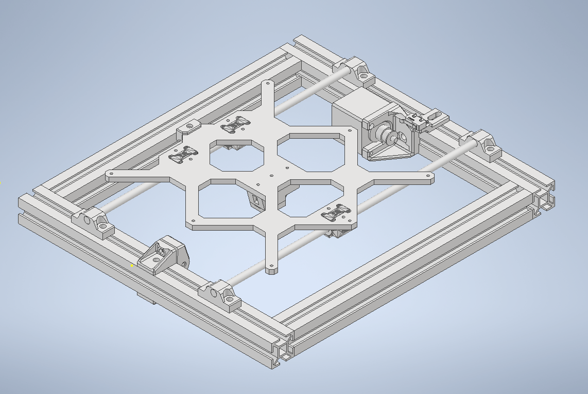 Pokládáním těch profilů přes sebe se ti zkrátí délka y a výška z ne? To už můžeš nechat rám jak je a přidat dva profiy na předek a zadek a bude to mít stejný výsledný tvar jak průša. Ale nž takovéhle úpravy tak mi přijde jednodušší předělat osu x a nebo dát motory shora.