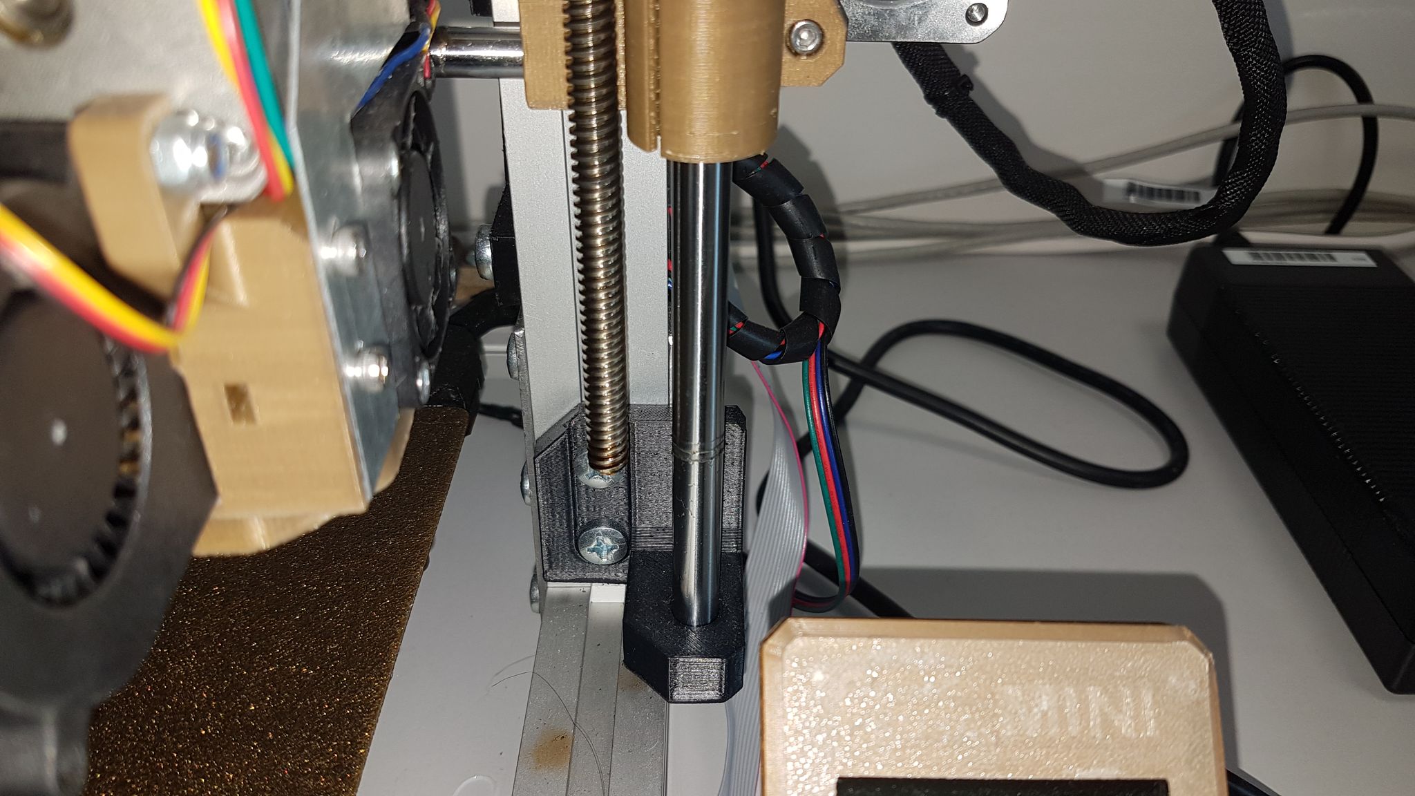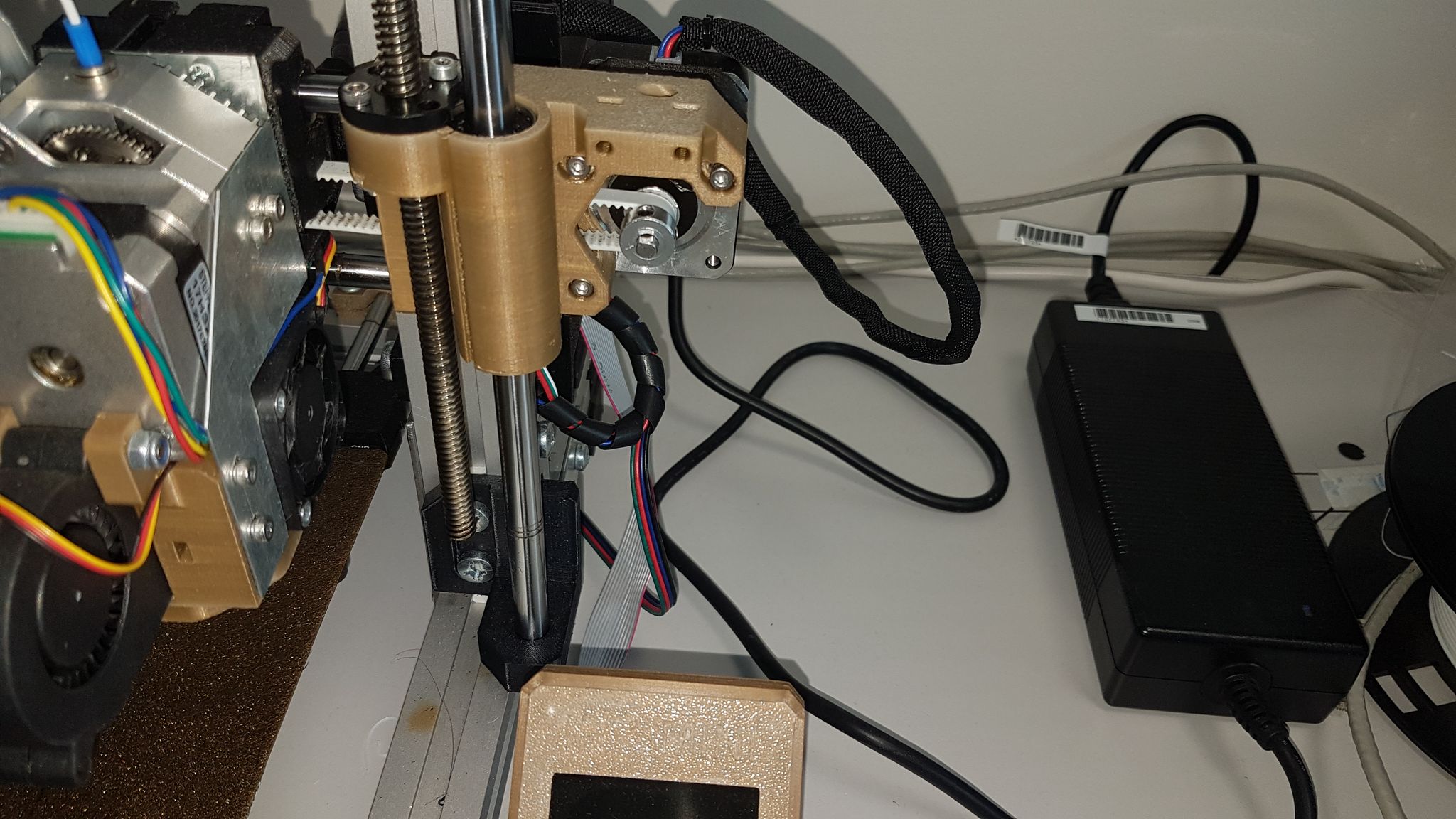 úspěšně jsem předělal osu X na prusovske dily MK3S. ALE je tu problém. Kvůli spojkám 8x5 nejde sjet s osou níž než cca 4 cm nad tu desku s nápisem REBEL (nikoliv tedy sklo, uvedená vzdálenost je deska-hotend). Dá se to řešit delšími šrouby co drží desku, ale raději bych i kvůli plánovanému přechodu na ty prusa desky udělal jinak, aby jela níž.