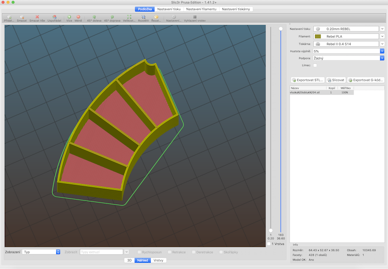Profil mi prestal fungovat a Slic3r hazel chybu pri startu. Myslel sem si, ze sem zmenil spatne nejakou hodnotu a ze mu to vadi. Tak sem postupne vracel puvodni nastaveni az sem dosel k tomu, ze originalni profil a muj profil se lisil jen v teplotach (porovnaval sem to programem, takze ani CR/LF se nelisily). Ale stejne nefungoval. Tak sem zkopiroval profil znovu a nastavil teploty a udelal upravy chlazeni a vse fungovalo dobre. Pak sem promazal i ty komenty s diakritikou atd. a porad fungoval. Zkratka se nekdy nekde neco .... a nebo si Slic3r jeste schovava neco bokem a dohromady to pak nesedi.