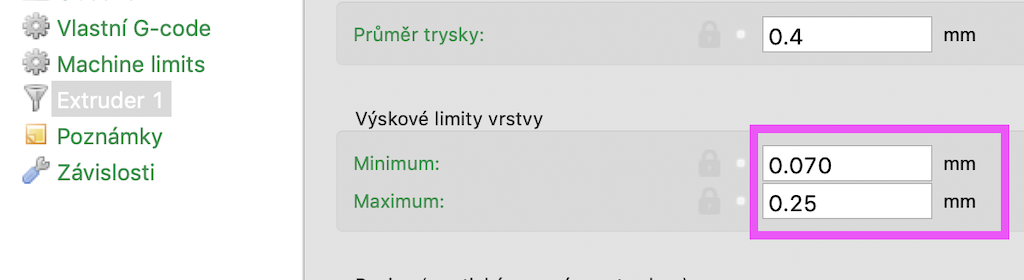 Máš v nastavení tiskárny u extruderu nastaveno min a max vrstvy?