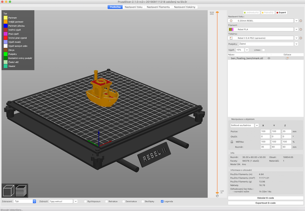 - tak přesný výpočet času tisku + automatické přidání doby tisku do názvu generovaného gcode jiný slicer nemá