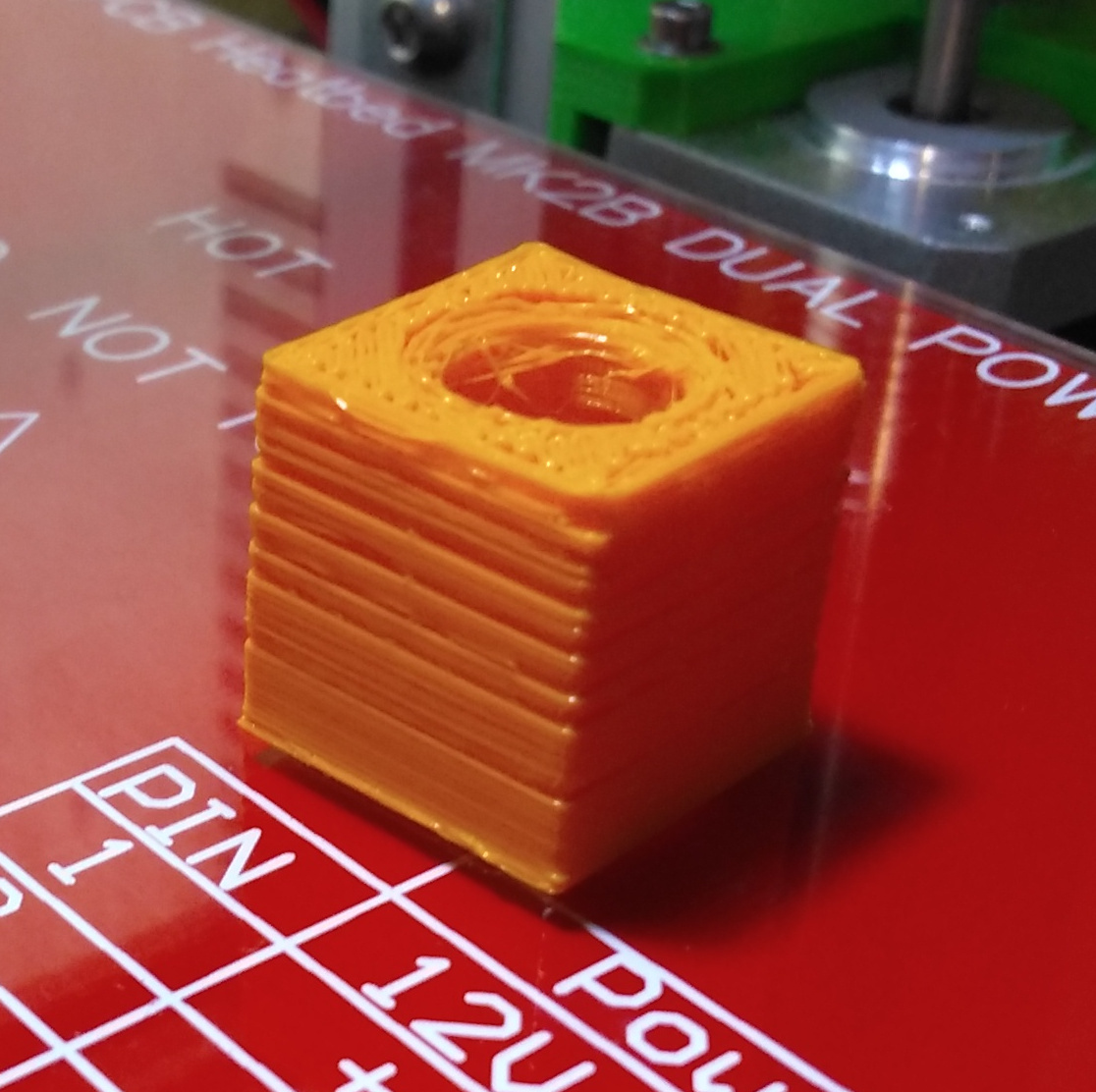 po laborování s nastavením slic3ru jsem zkusil vaší kostku a první tisk je na světě. prvních pár vrstev dole vypadalo ok pak už je výsledek nic moc. co s tím?