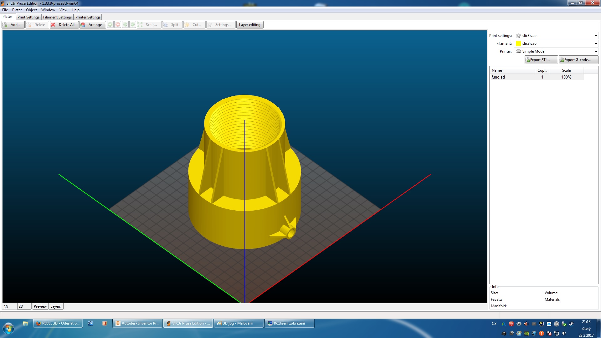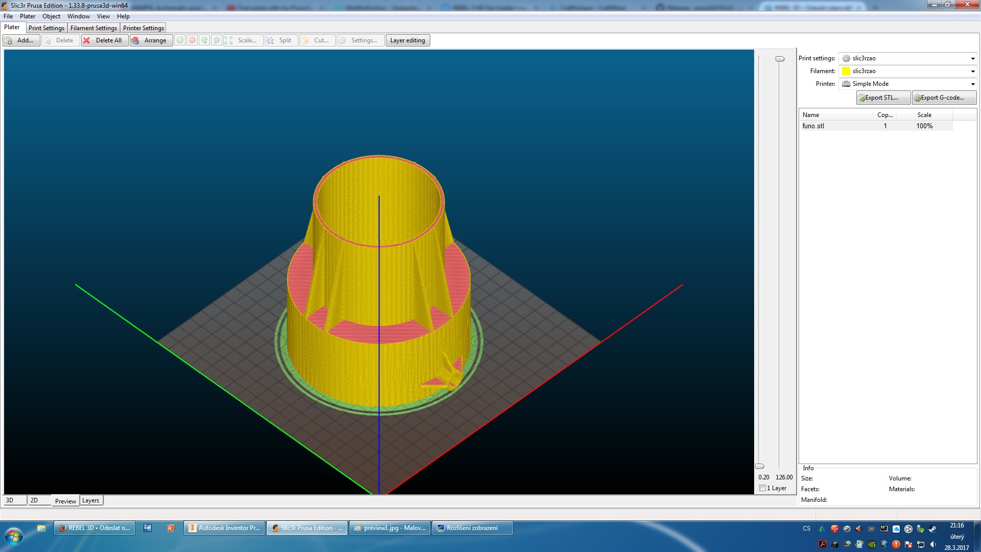 Pak jsem STL prohnal NETFABem a vrazil opět do toho samého Slic3r - a ejhle v náhledu paráda.