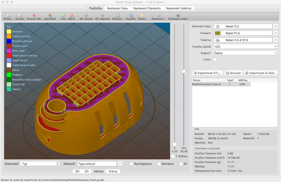 Můžeš sem hodit .STL, G-CODE případně i nastavení Slic3ru