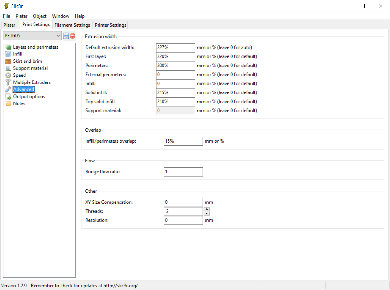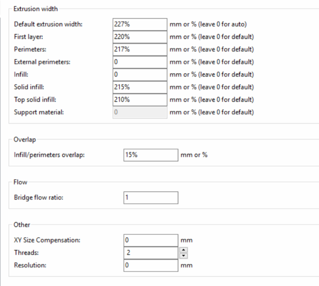 Hoď sem co máš za parametry v Print setings > Adnanced