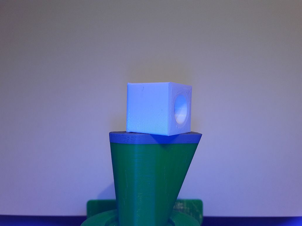 Prostě mi to dělá tohle. Černá je 2x2x2cm bílá je 2,5x2,5x2cm. I ve Sliceru je krásně vidět jak jsou jednotlivé vrstvy od sebe. Jak kdybych měl špatně nastaveny osy ( kroky). Proč je to ale vidět ve Sliceru. Na fotce jde krásně vidět jak je to neuzavřené a od sebe.
