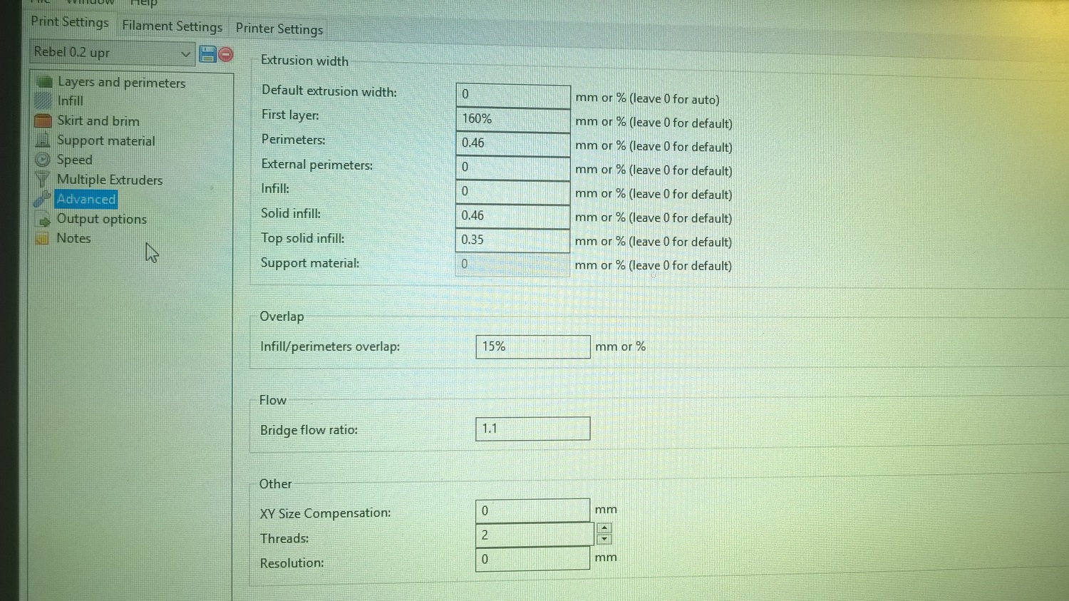 skus sa pohrať s tymito nastaveniami. najviac s extrusion a perimeter. pomen to a vyskušaj naslicovať, uvidiš rozdieli a dosť podstatne
