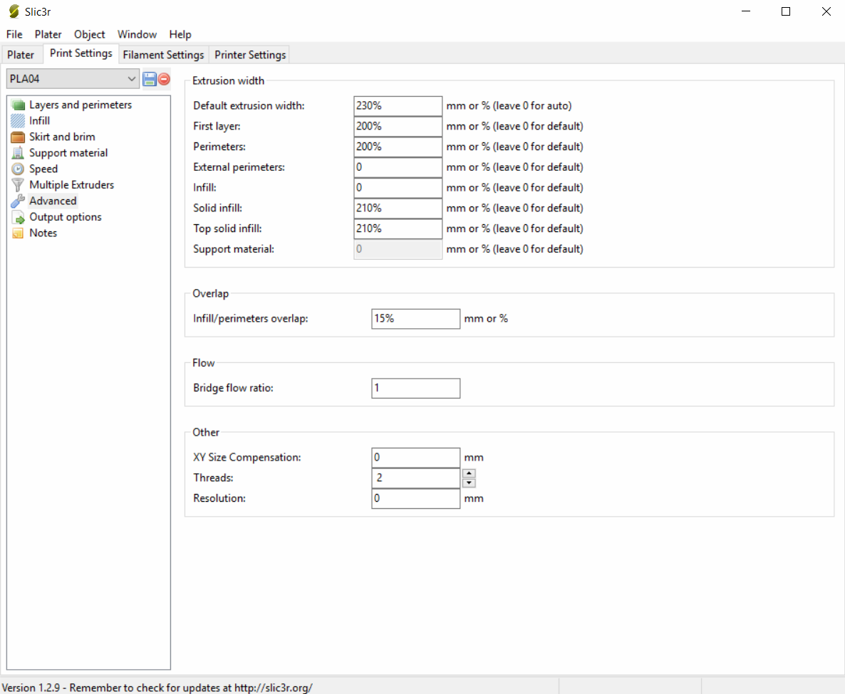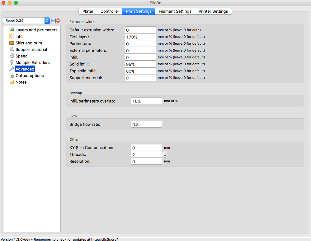 3 Slic3r podla vyvinuti zmenily metod vygenerovani gcode-y