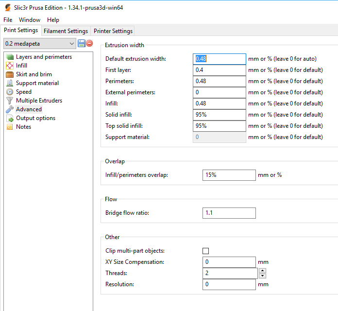 Nastavení Slic3ru mám nyní "made by medapeta" a docela mi to vyhovuje.