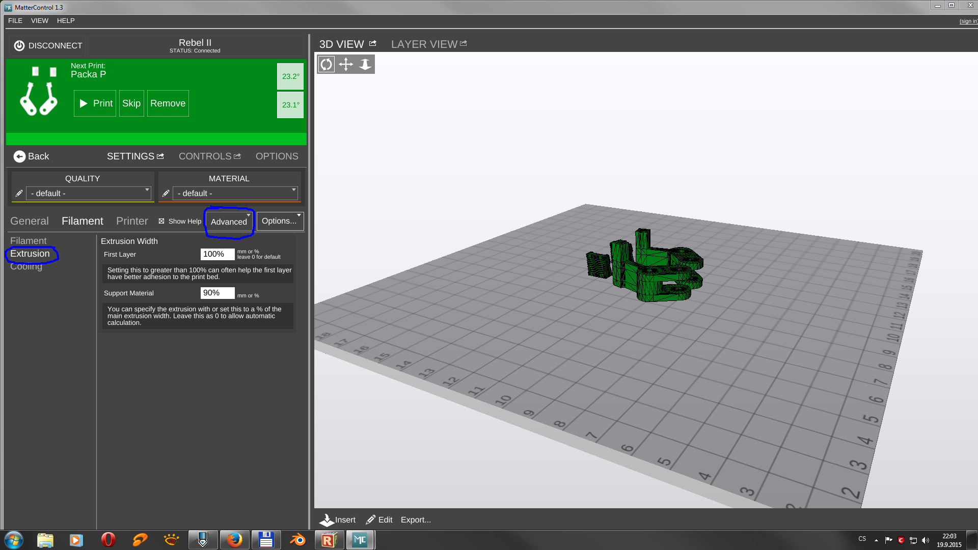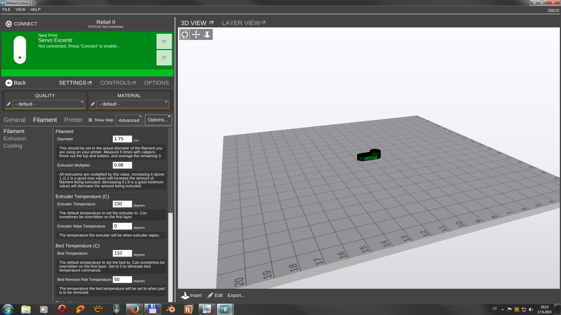 Teďka už k samotnému MatterControleru verze 1.3. Na první pohled je prostředí docela pěkné a přehledně udělané jakmile se do něho dostanete.