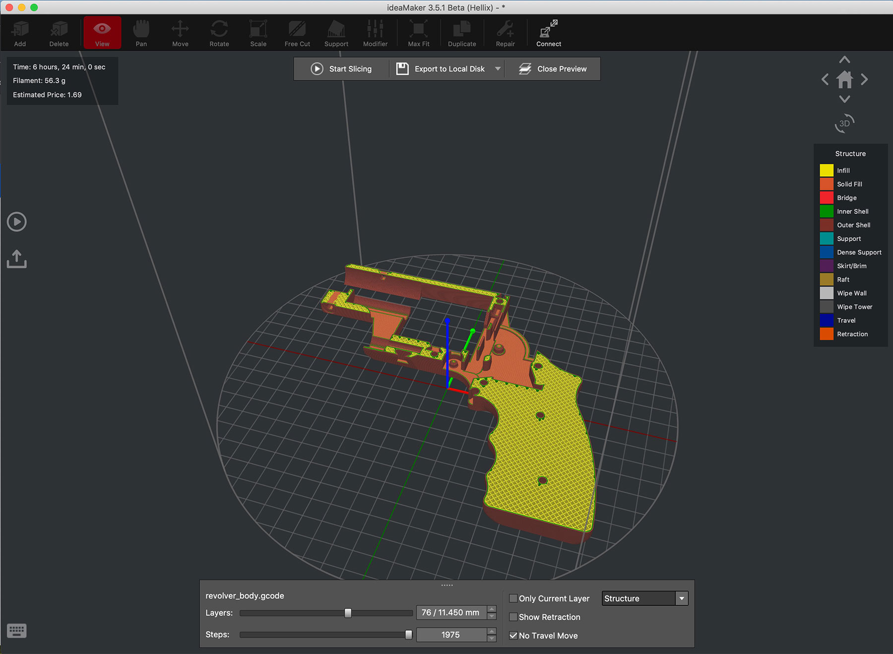 Rychlost je tak mezi Slic3r a S3D, i na kompu bez grafiky se dá celkem použít (MacBook Pro Retina, 13-inch, Mid 2014).