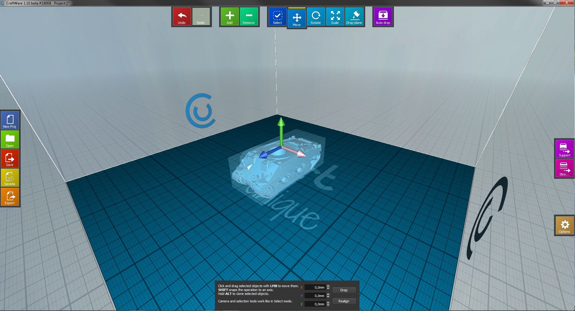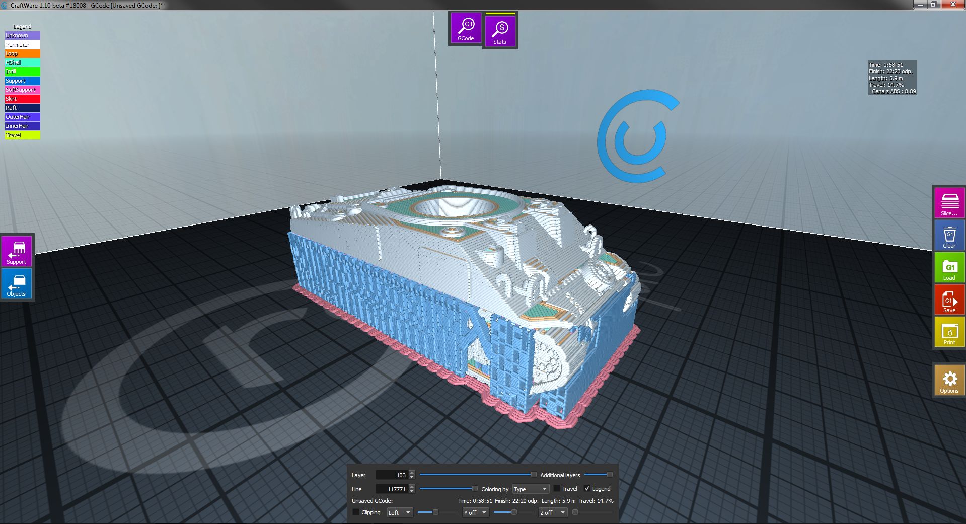 Po dlouhé době hledání jiného free sliceru než je Slic3r, Cura, atd. jsem objevil CraftWare. Je to podle mého velice pěkně udělaný program pro tvorbu G kódu pro 3D tisk. Má celkem jednoduché ovládání.