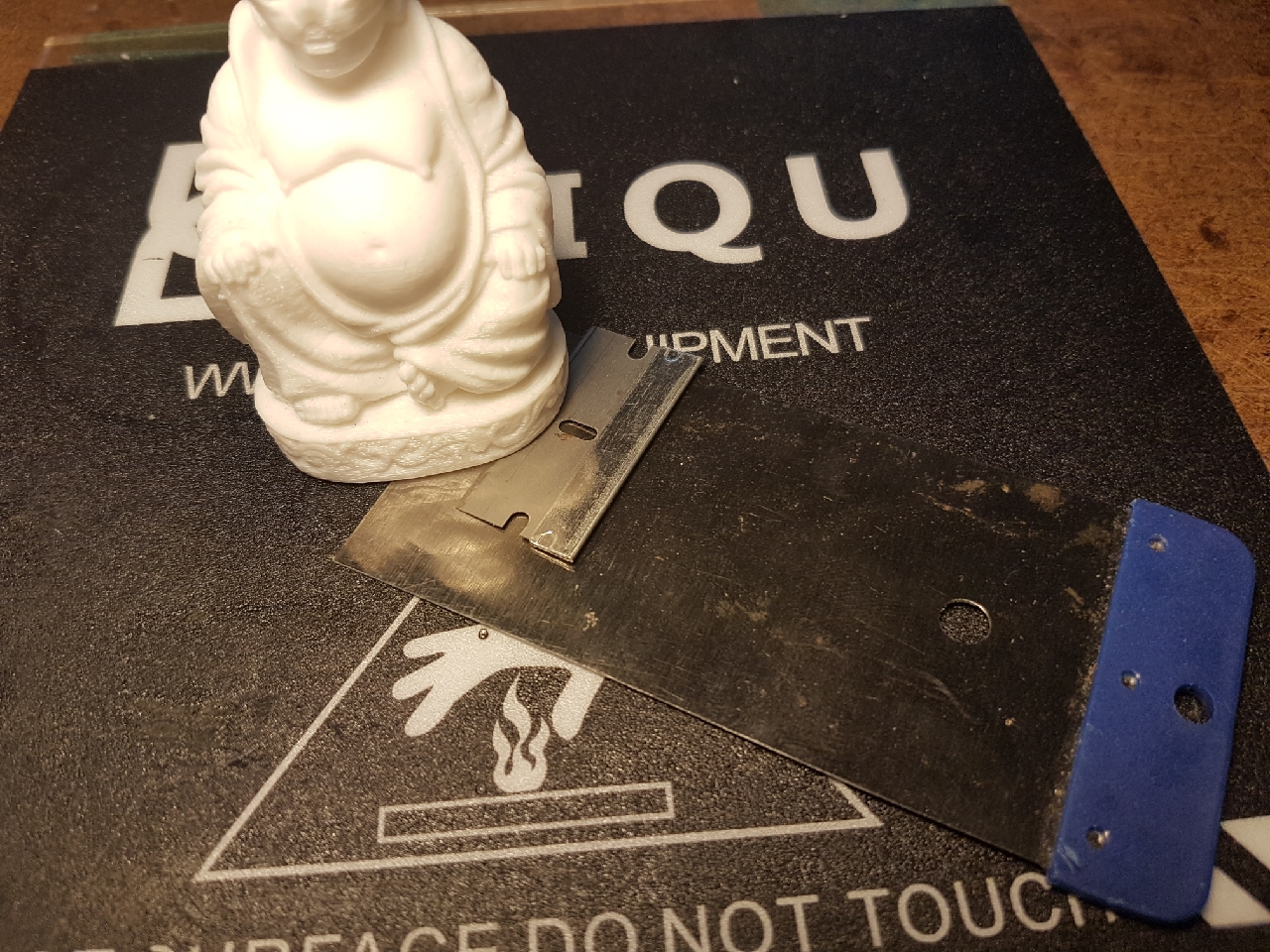 Zdrávím cim odlepujete výtisk vetší plochy na skle s lepidlem a materiál pla.Aby se výtisk nezničil.Díky