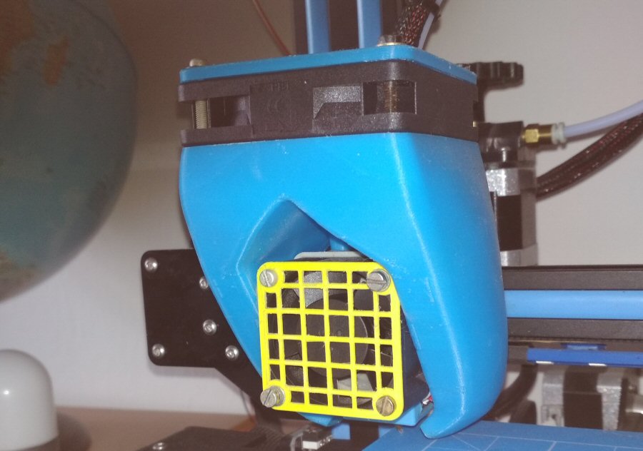 S něčím podobným jsem bojoval, když se mi dole zdeformoval tištěný nástavec na ventilátor, takže to málo foukalo na spodní část chladiče. Už tam mám jiný + ventilátor 40x20 na hotend (originální je 40x10) + regulovatelný 60x15 na výtisk (originál tam nemá buď žádný nebo ten radiální po straně hotendu).