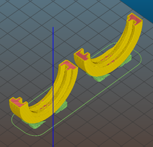Tak zase další na jednoextrudérový tiskárně obtížnější tisk. Mufna na spojení dvou vysavačových hadic z metráže. Jak známo, mají obdélníkový závit ale trapéz to asi není. Klasický metrický a whitworth závity s vrcholovým úhlem 60 nebo 55 stupňů a nebo oblý závit jsem tisknul celkem bez problémů, protože vrstvy se na sebe vrší pod úhlem. U obdélníku je ale skok. Slicr to sice řeší mostem ale i když chladím na plný pecky, most se trochu propadne. Jenže ten intenzivní fuk zase stahuje již vytištěné slabé vrstvy bez podpory nahoru k trysce. Zkoušel jsem nejdříve tisk z ABS, nepoužitelný, z PLA o dost lepší. Tryska 0,4mm, vrstva 0,18. Silnější vrstva už dělá v závitu velký zuby s každou další vrstvou. S podporou se to tisknou nedá, závit se kompletně zapráská a po vylámání podpory má strašně mizerný povrch. Zkusil jsem tisknou ze dvou půlek naležato ale taky to chce podporu uprostřed oblouku, takže se závit zase zapráská a hadice do něho nepůjde našroubovat.