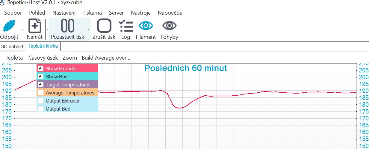 , tohle by mě nenapadlo, že se to tak ochladí. viz.obrázek, klesne to pod 180°C, pak čeká než vyleze opět nad a jede. Je tam tedy limit asi těch 180°C...mám tam radiální ventilátor 2W, chtěl jsem hodně chladit kvůli převisům a mostům. Pohraju si s tím, díky moc!