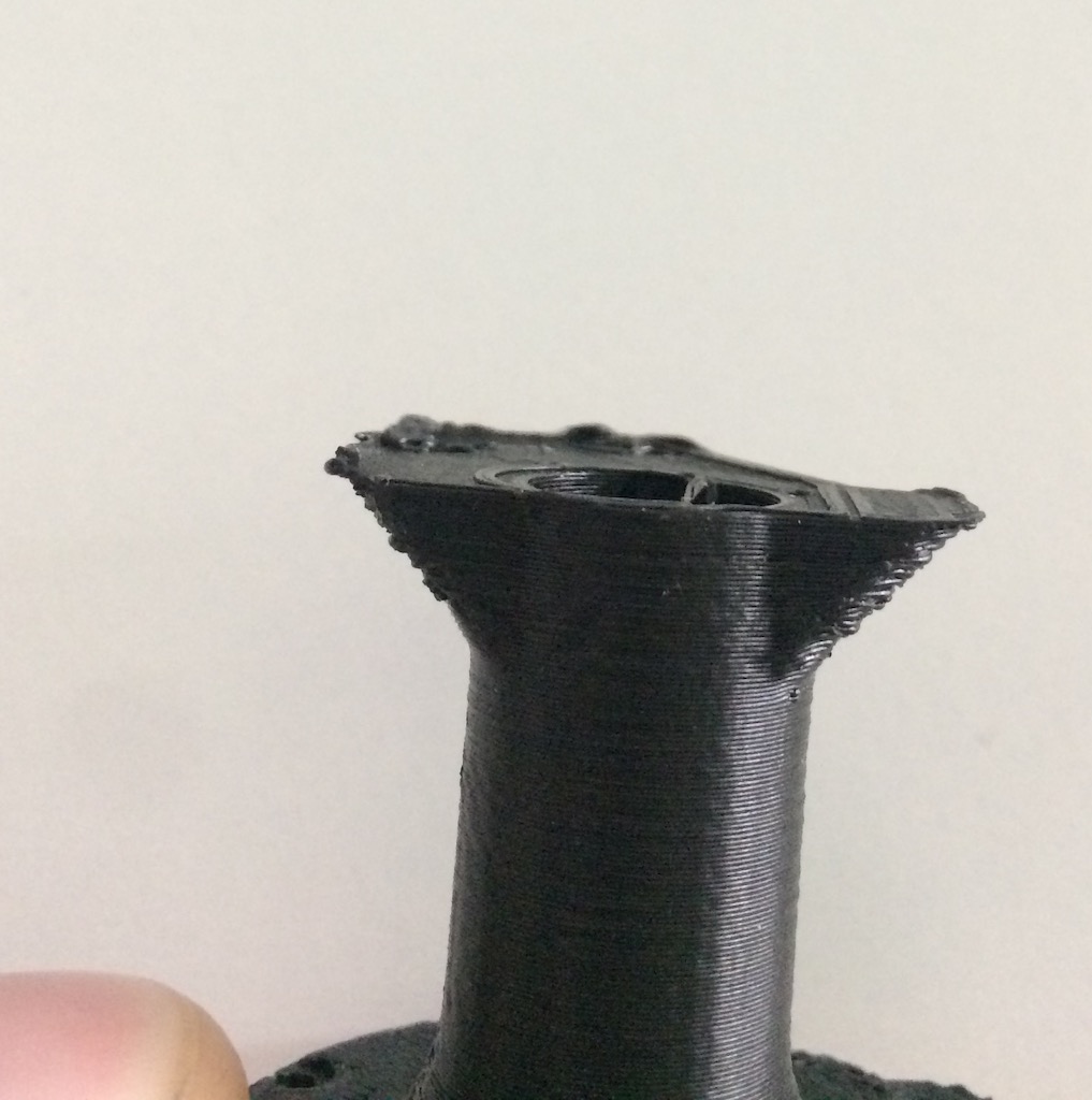 Tak mam jeste jedne problem s CTECH filamentem PLA - pri tisu postupne se rozsirujiciho se sloupu se mi zvedaji okraje plochy. Coz vede az k tomu, ze kdyz se to zvedne uz dost a prejizdi to na vedlejsi objekt, tak se o to zasekne hotend a preskoci kroky. Zkousel jsem snizit foukani, zvysit foukani, pracovat s teplotou hotendu, zkousel jsem zpomalovat, ale nejak se toho nemuzu zbavit