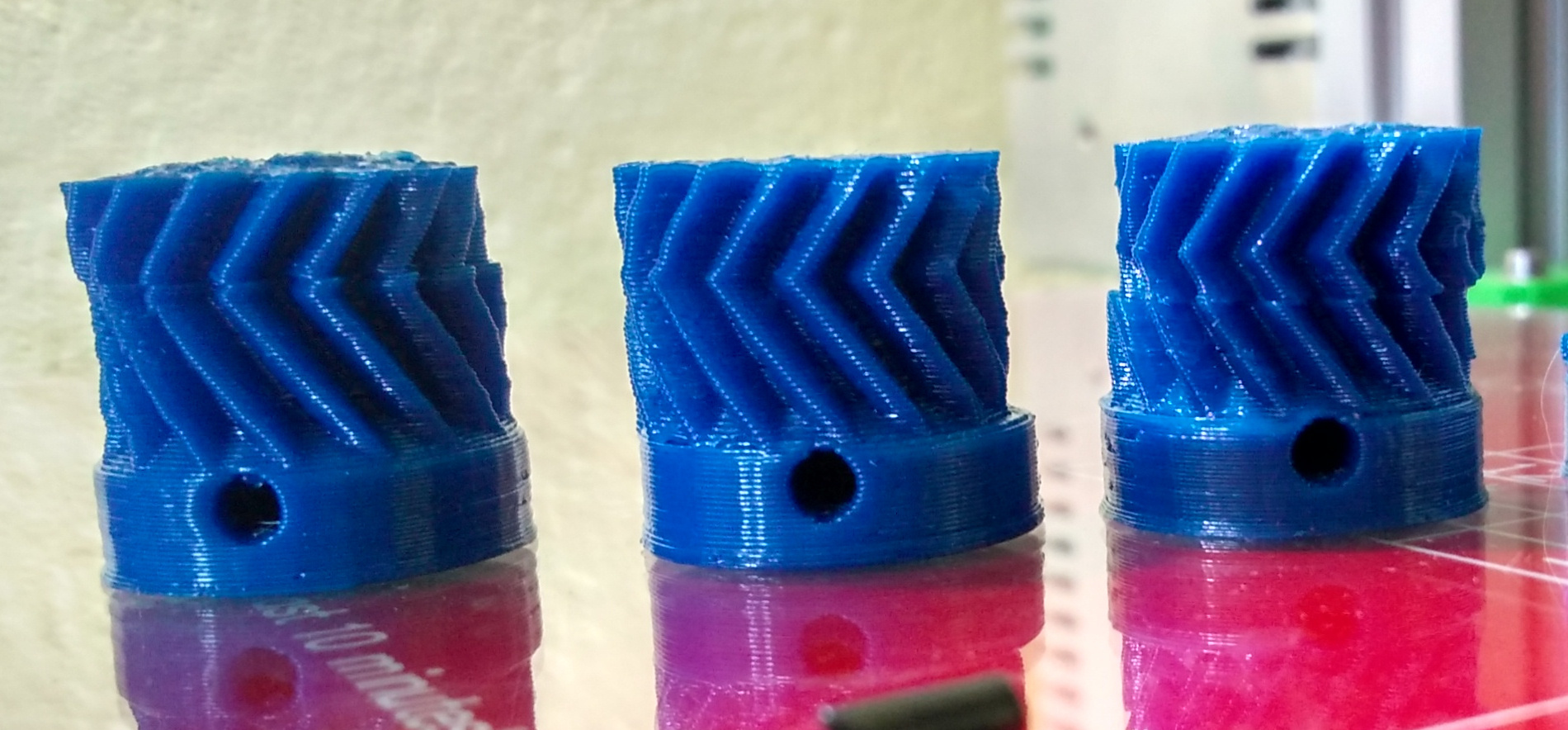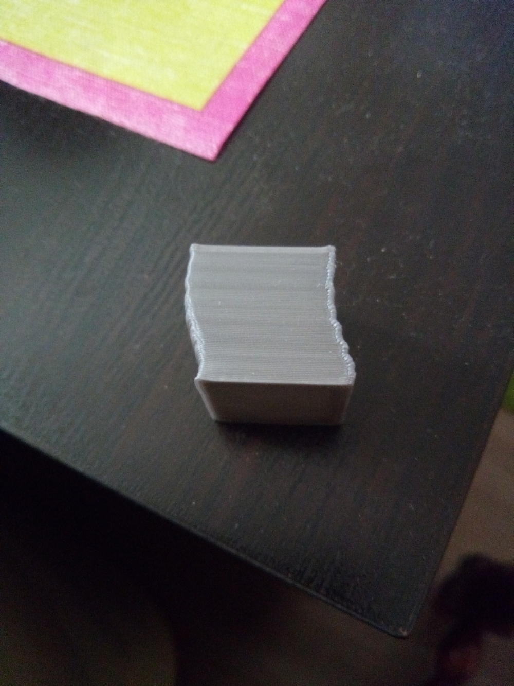 Včera jsem se na to podíval a hrůza. Řemenice posunutá oproti stolku, červík úplně špatně. Tohle tam muselo zlobit hodně dlouho. Bych si dal, že jsem to neprohlédl pořádněji. Jeden pohled na tiskárnu odspodu to odhalil. Tisk prvních zkušebních kostek v pohodě. Uvidíme jak dopadne tisk většího kousku, ale já doufám, že to bylo ono. Ono by to i odpovídalo, že to prokluzovalo a tisk se posouval. Napínal jsem řemen zbytečně.