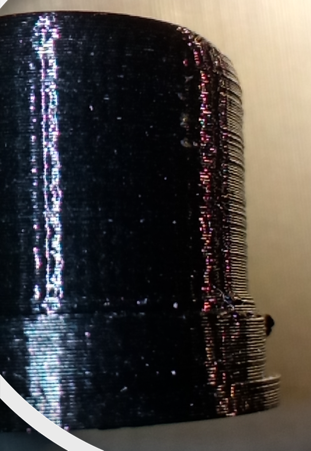 Tady malá ukázka jak vypadá tisk vrstev 0,1mm u mě (detail je 60x lupa na mobil - líp detail s dostupnou fototechnikou neumím).