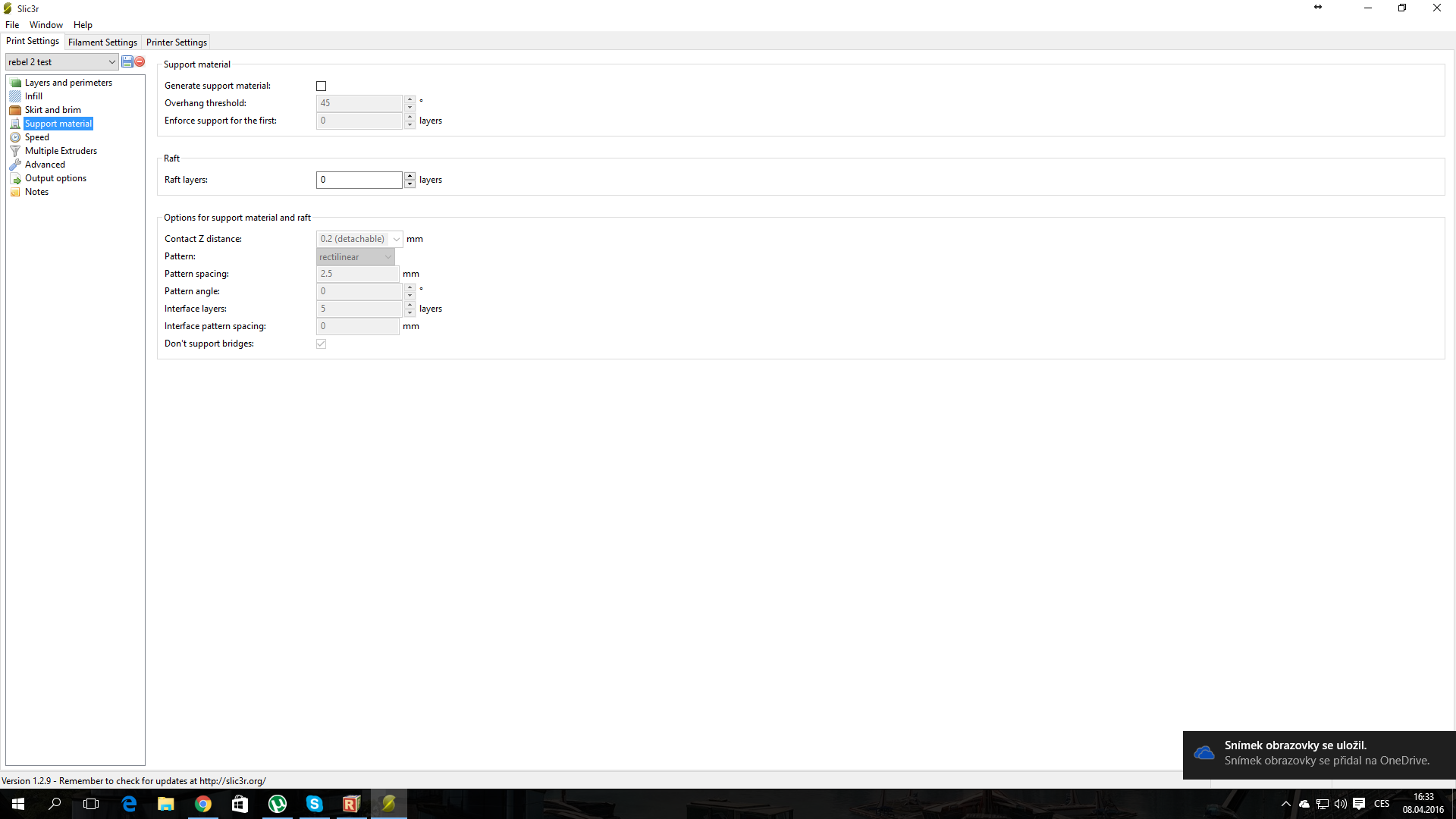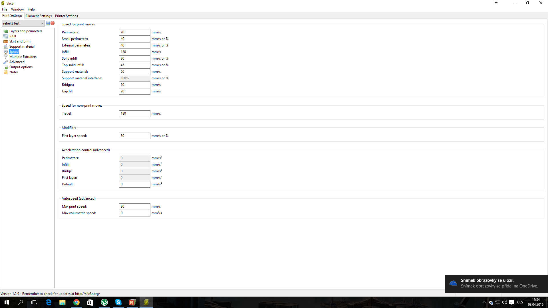 Ja z nej tisknu teprve tri dny a taky porad "experimentuju", myslim ze pouzit uplne moje nastaveni asi nebude nejlepsi napad :-), ale v kostce: