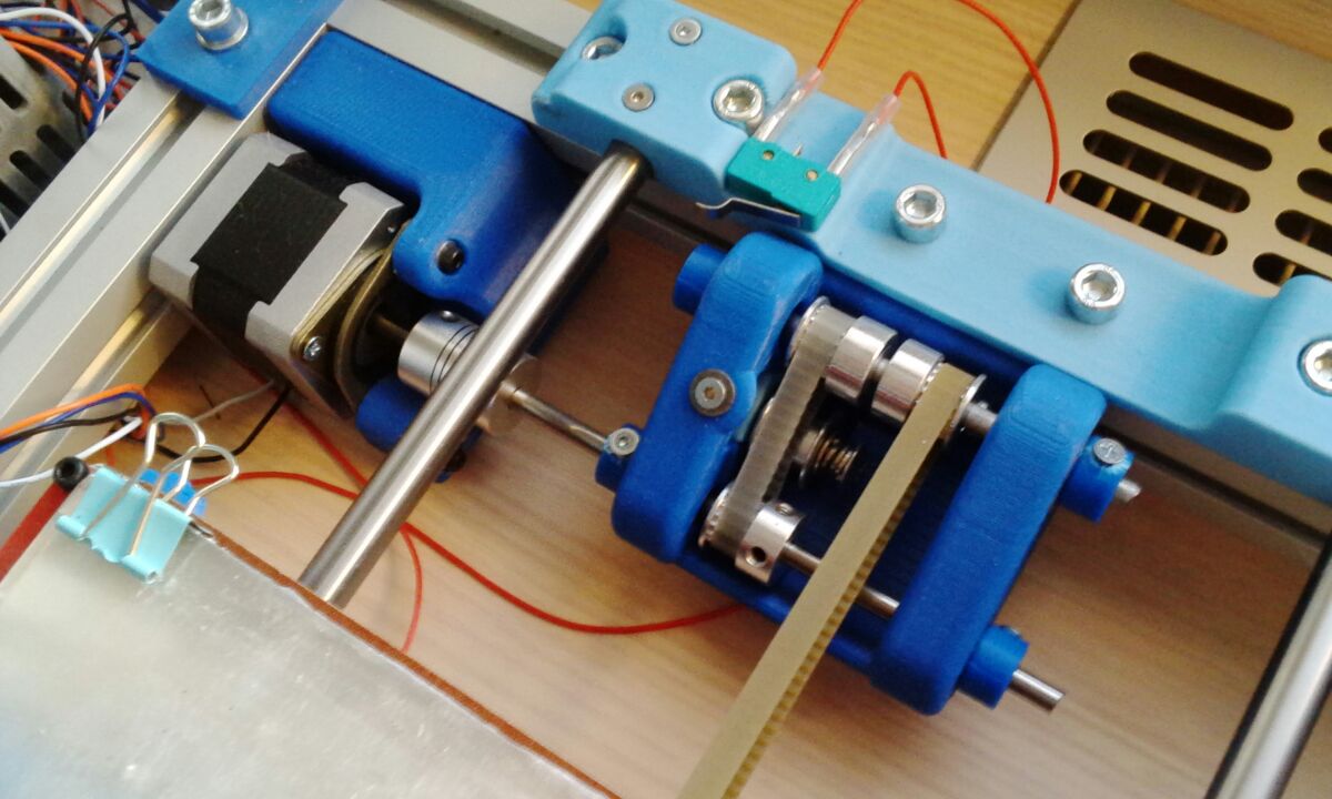 Ještě jsem si vzpomněl, že u stolku jsem i posunoval uchycení řemene, tak aby bylo přesně uprostřed. Dále jsem držák motoru Y výškově přiblížil co nejvíc k úrovni stolku, takže i upnutí řemene na stolečku mám blíž k němu, tak aby se řemen nacházel blíže středu pojezdových tyčí. Samotné tyče Y mám taky snížené a přímo naražené na spodní rám. Jak moc tato úprava byla k něčemu dobrá nedokážu přesně posoudit, ale horší to nebude.