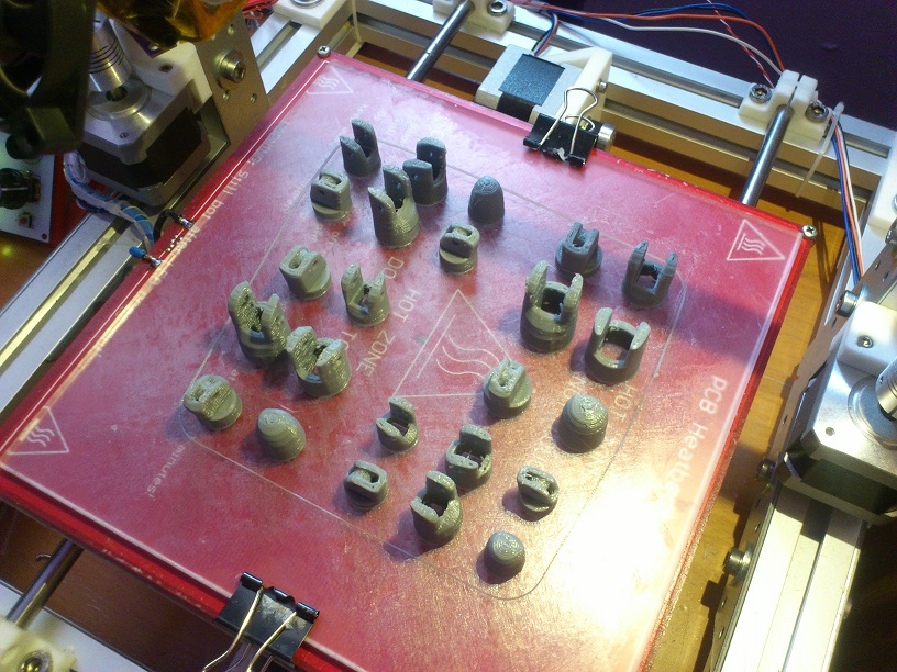 Pořád jsem bojoval s přichycením první vrstvy na podložku, tak jsem se jal zkoušet, co by tomu pomohlo.