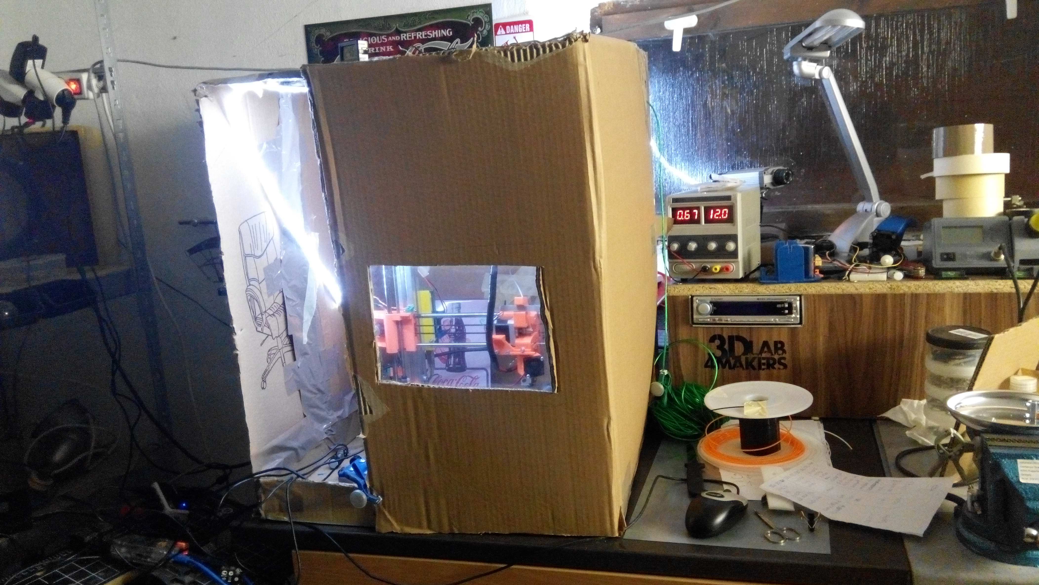 Já to nevydržím. Mám ve sklepě kde je tiskárna poměrně kosu a průvan, tak šla do luxusní krabice. Dnes přibylo ještě okénko :)