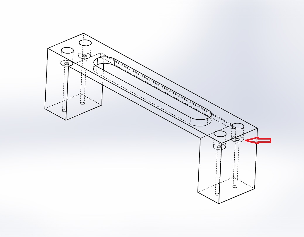 Potřebuju vytisknout takový třmen, který bude na každém konci přišroubován dvěma šrouby. Normálně ho vytisknu, řekněme s infillem 30%. Problém nastane když to přišroubuju. Kdybych mohl dát šrouby skrz, dám pod hlavu šroubu velkou podložku, aby se rozneslo zatížení a je po problému.