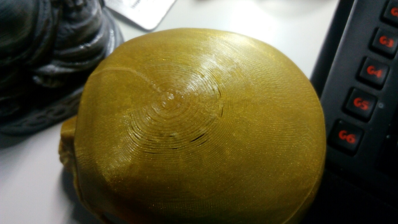Ve slicru jde nastavit aby to tisklo nejdříve venkovní "pomalej" perimetr. Vypadá to, že se v tom "uzavření klenby" nemá právě tištěná vrstva k předešlý k čemu přichytit. Jenže potom by zase mohl vzniknout podobný problém dole, když se těleso rozšiřuje. Jestli by to šlo od nějaký vrstvy změnit editací nebo přidáním G-kódu, k tomu ať se vyjádří znalci.
