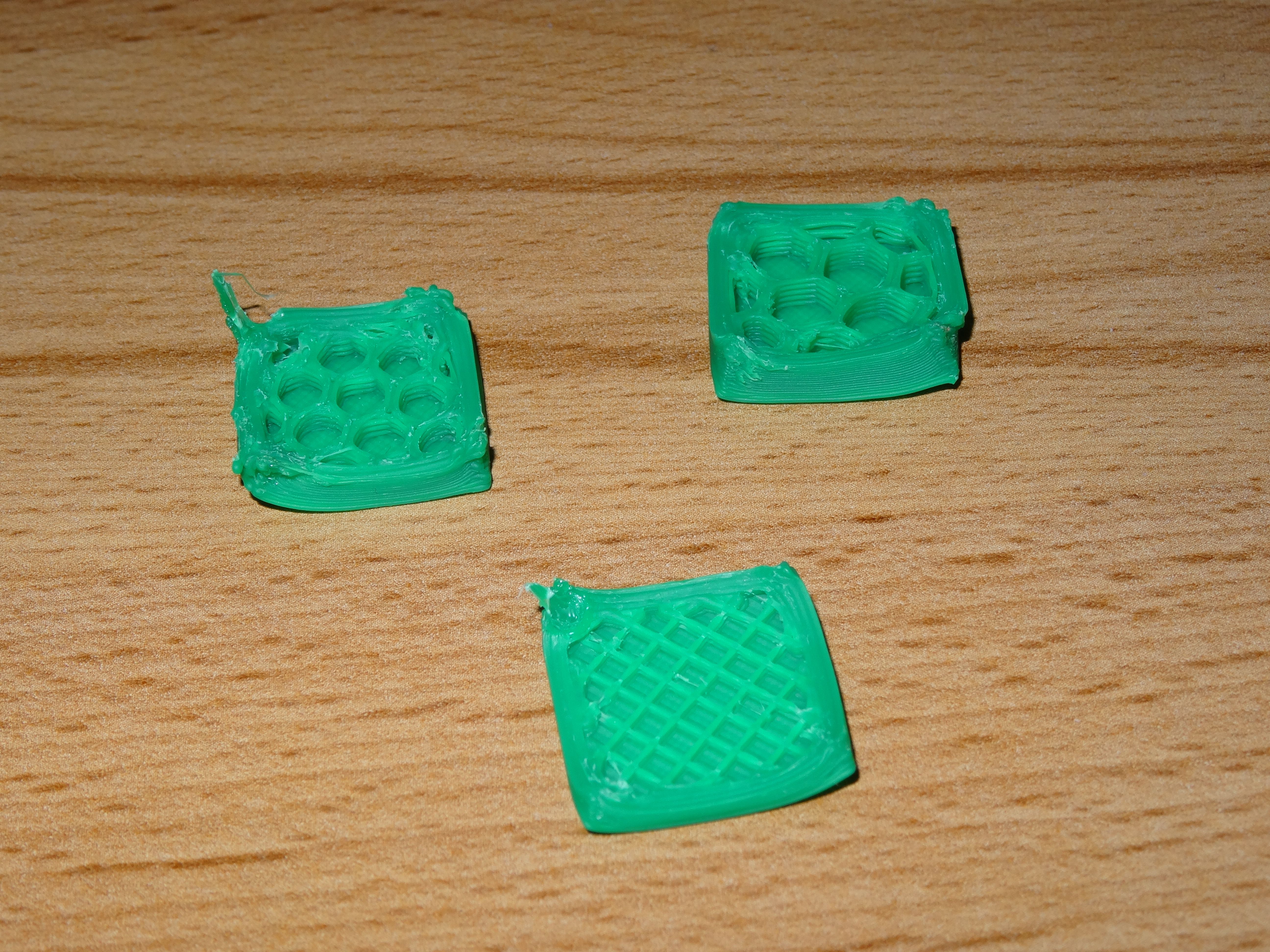 Hodně mi pomohlo vysvětlení rychlost vs. chladnutí. Prvně jsem experimentoval s tiskem více objektů současně a potom s rychlostmi. Výsledky jsou o poznání nadějnější: