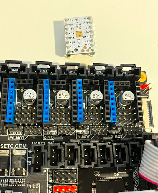 chtěl bych se zeptat, zda je potřeba u fysetc tmc2208 v1.2 spájet nějaké konektory, aby bylo možné zapnout uart. Na displeji mi svítí tmc connection error, ale osy šlapou jak mají. Výtisky jsou velice zvláštní a to jsem is pohrál už i s marlinem 2.0.5 a dokonce i nastavil slicer. Přikládám obrázky driverů, protože vůbec nevypadá má 1.2 jako 1.2, kterou tu někdo postoval.
