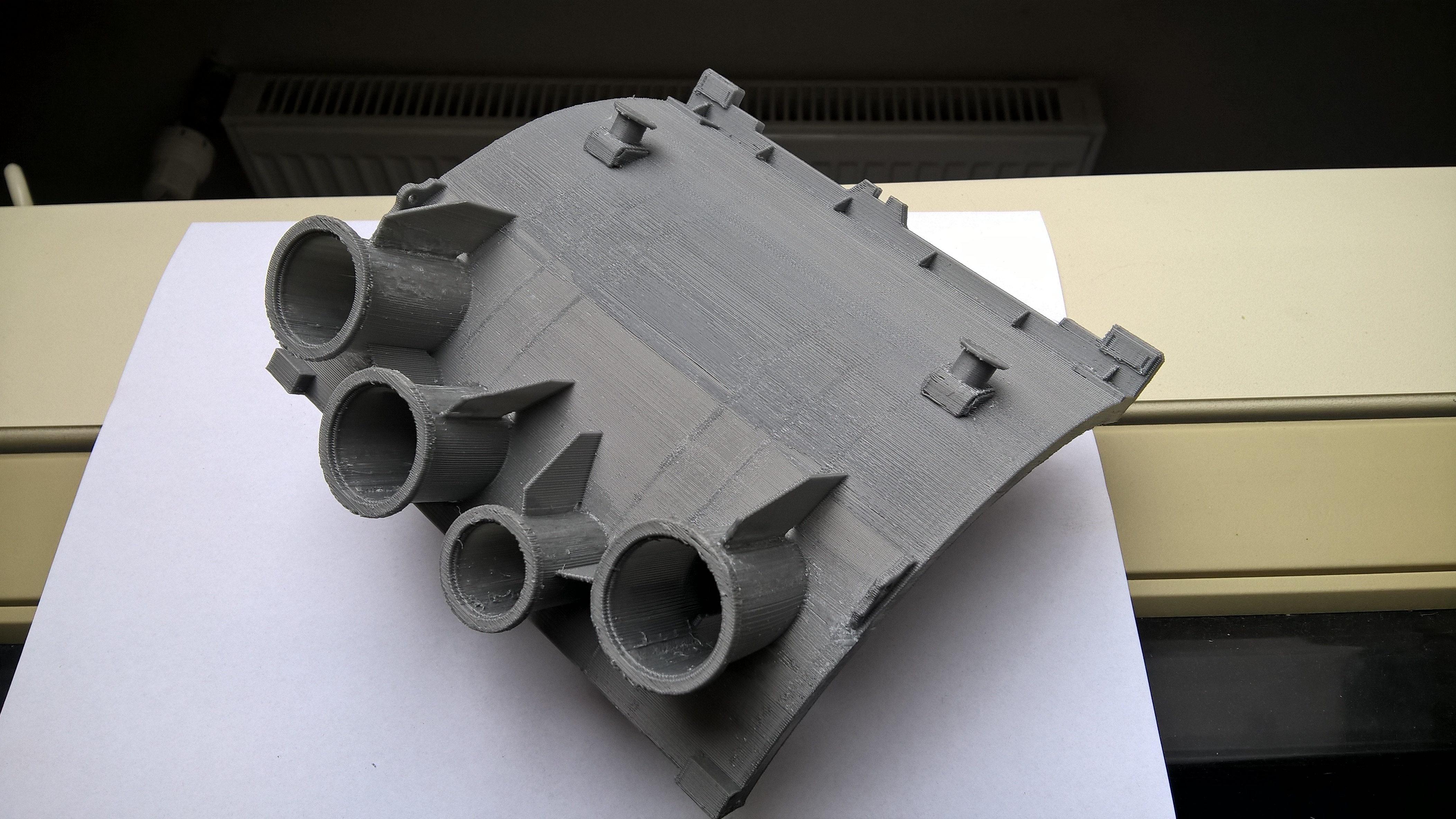 Jsem ze Šlovic u Plzně, ale nemám zkušenost s tiskem takto velkých a složitých objektů(otvory a tenké stěny). Nicméně zkušebně jsem zkusil naslicovat jeden díl o rozměru 170×123×136 mm a vypadlo z toho 98 m ABS a okolo 12-14 hodin tisku při výšce vrstvy 0,25 mm (cca 300,- za díl i s prací). Vytisknout by to mělo jít, ale podle mého by se tohle hodilo spíše na technologii tisku DPL nebo SLA.