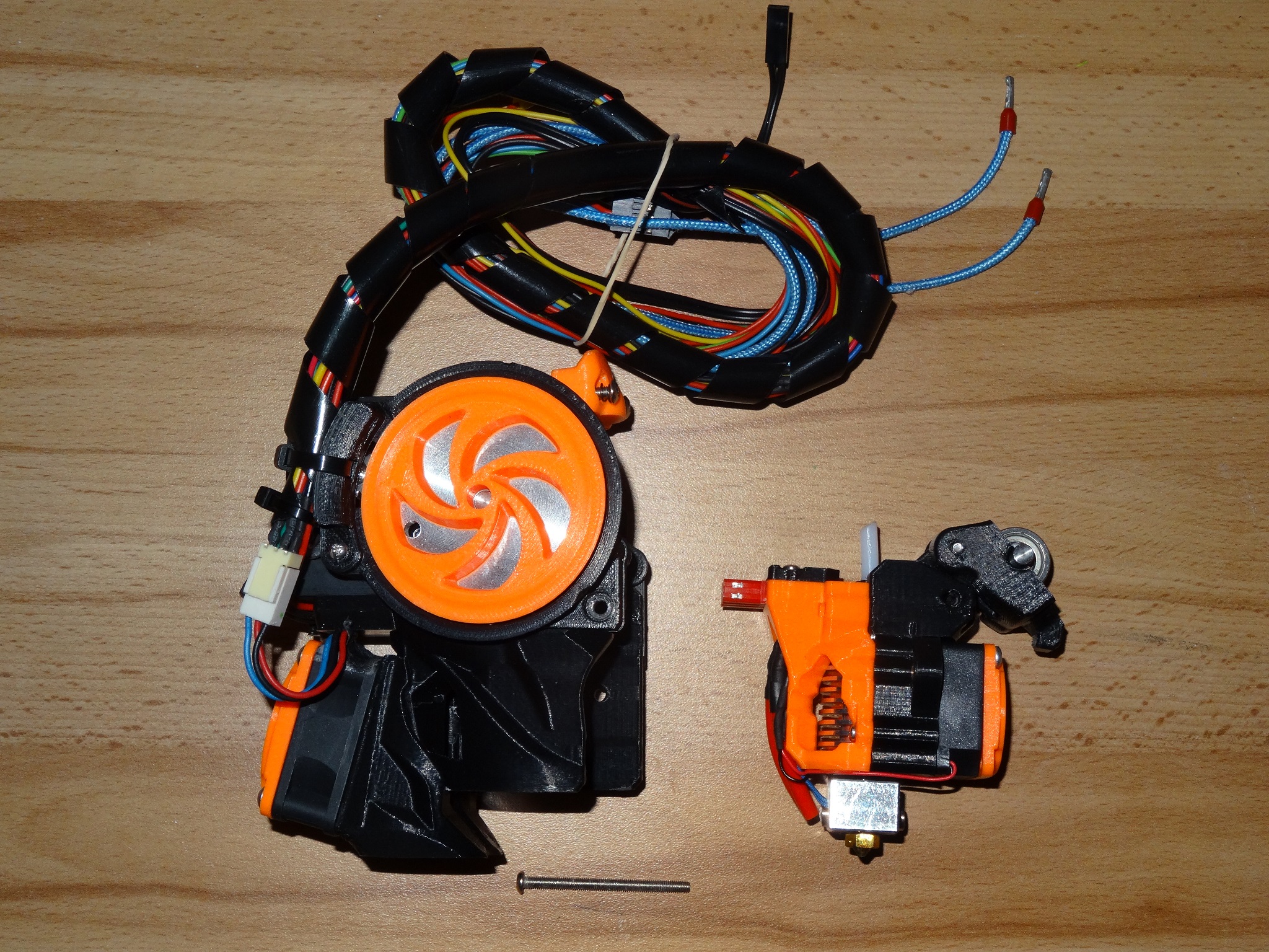 Prodám Toranado Precision Geared Extruder (side-mount verze), sestavený z HW kitu od autora a originál E3D full hotendu. Tištěno z ABS, bearingholder z PET-G. Použil jsem jej poze párkrát.
