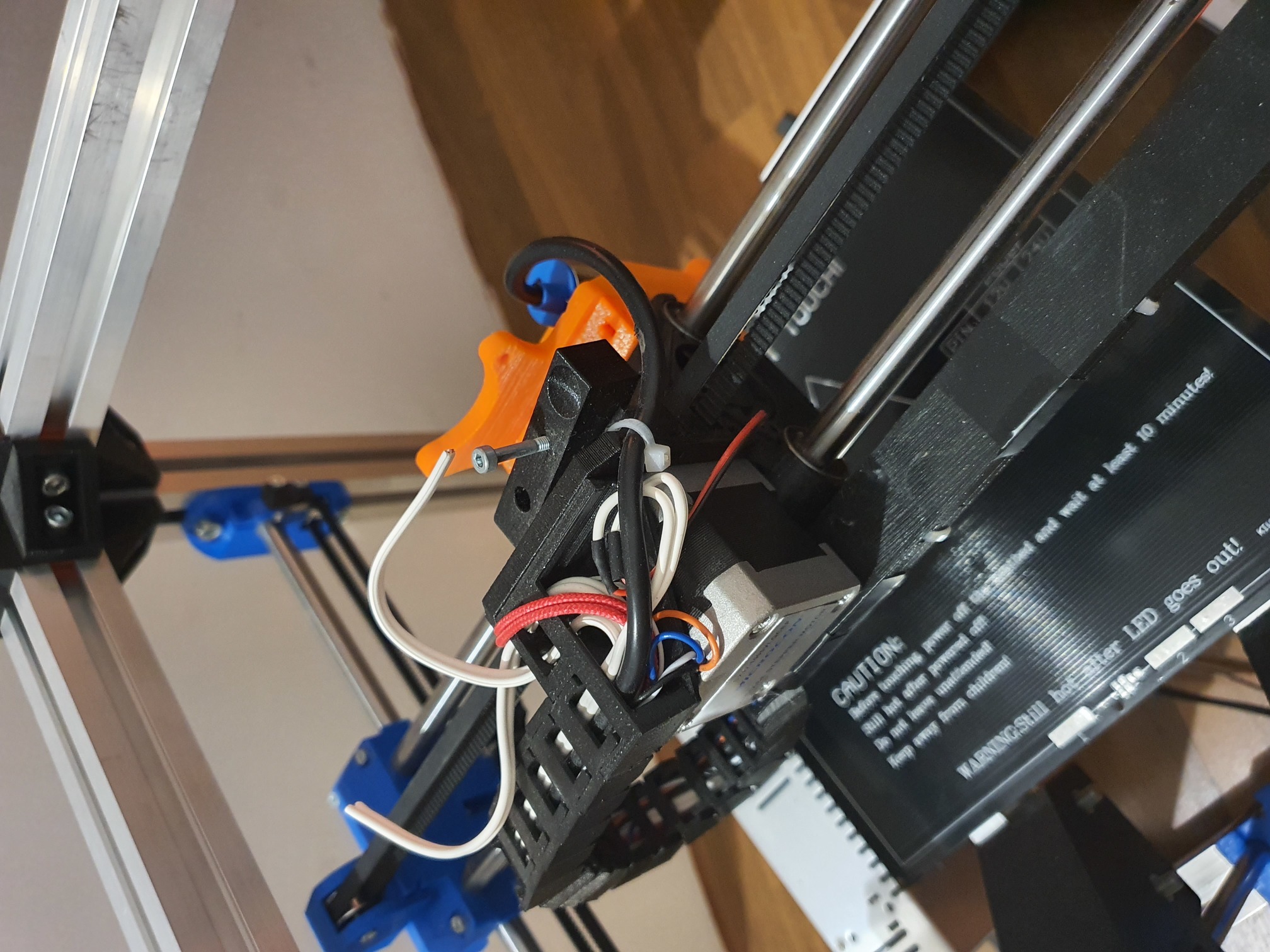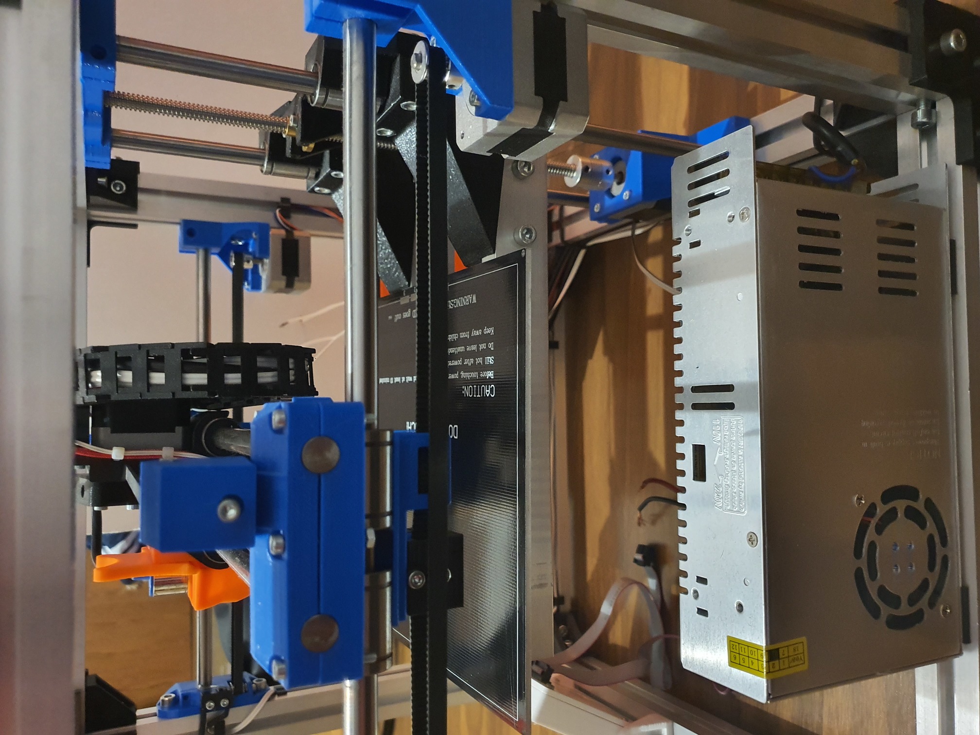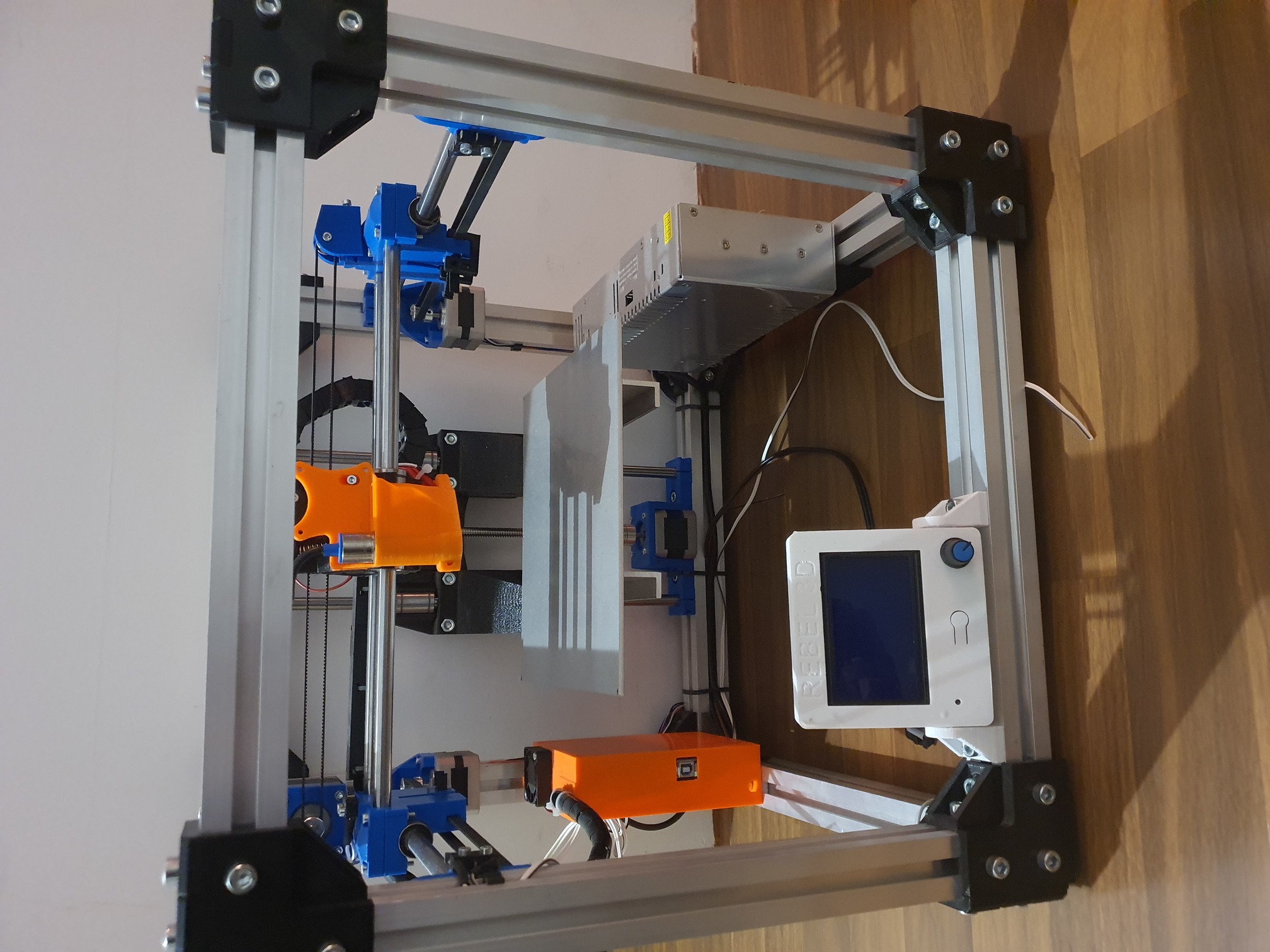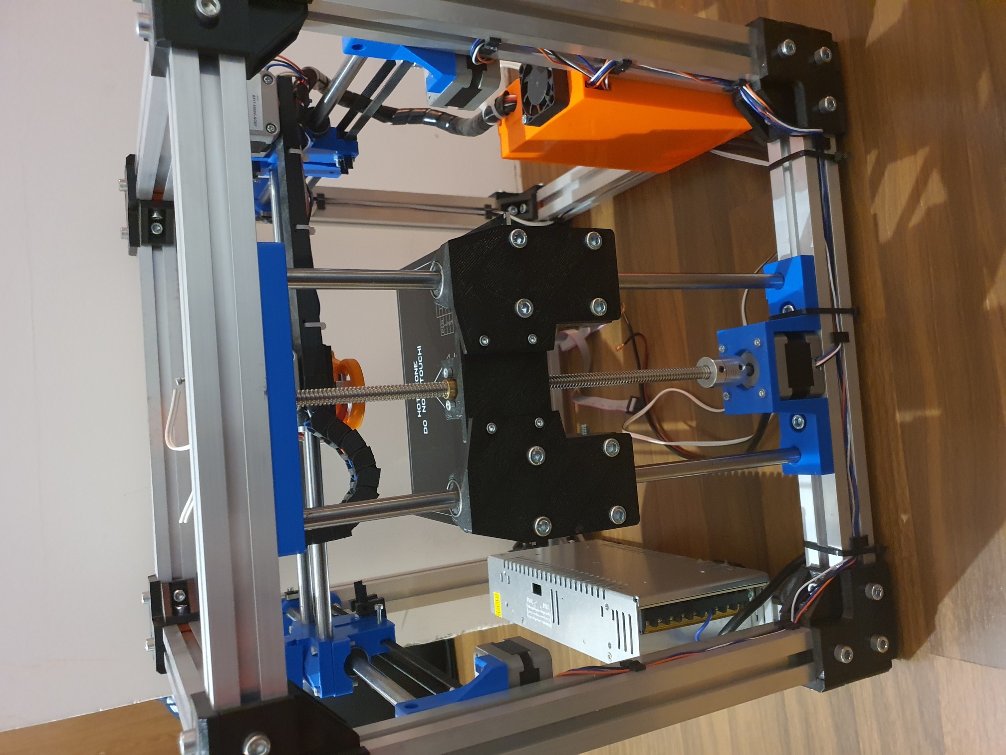 Nicméně, je to v podstatě hotové a kompletní, stačí zapojit koncáky do desky a dodělat stolek. Díly jsem tiskl já, je to již dávno, ale myslím, že jsem nešetřil. Vše je z PETG, krom Extuderu a ofuku, to je ABS.