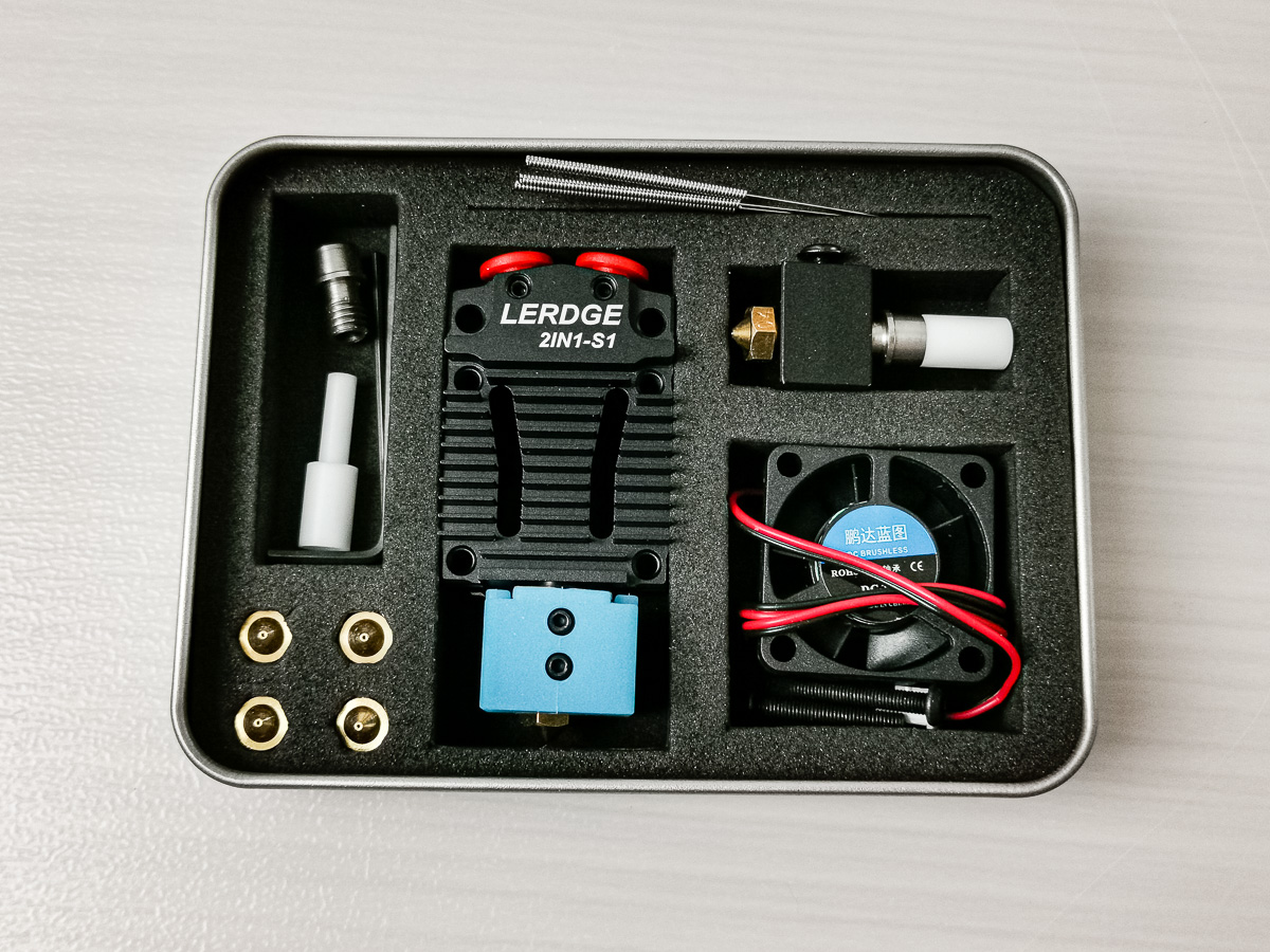- duální extruder Lerdge 2IN1 V2 kit 24V - 300,-Kč (tenhle jediný je použitý, ale plně funkční)