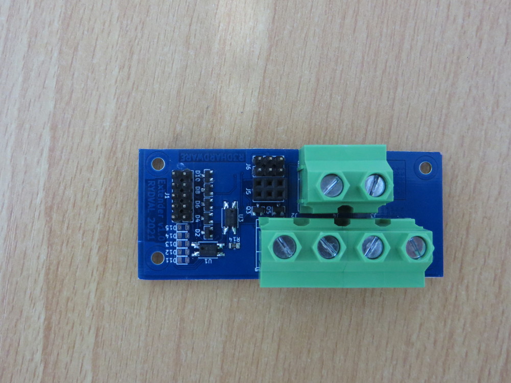 Externí mosfet vlastní konstrukce. Dva výkonné výstupy, které zvládnou bez problému 20 A. Svorkovnice pojmou vodiče o průřezu až 4 mm^2. Tři slabší vhodné pro ventilátory, nebo kousek led pásku. Lze použít i pro ovládání ventilátorů a dalších zařízení na jiném napětí, než je napětí řídící desky. Všechny výstupy jsou galvanicky oddělené od řídící desky, takže případný zkrat neohrozí řídící elektroniku.