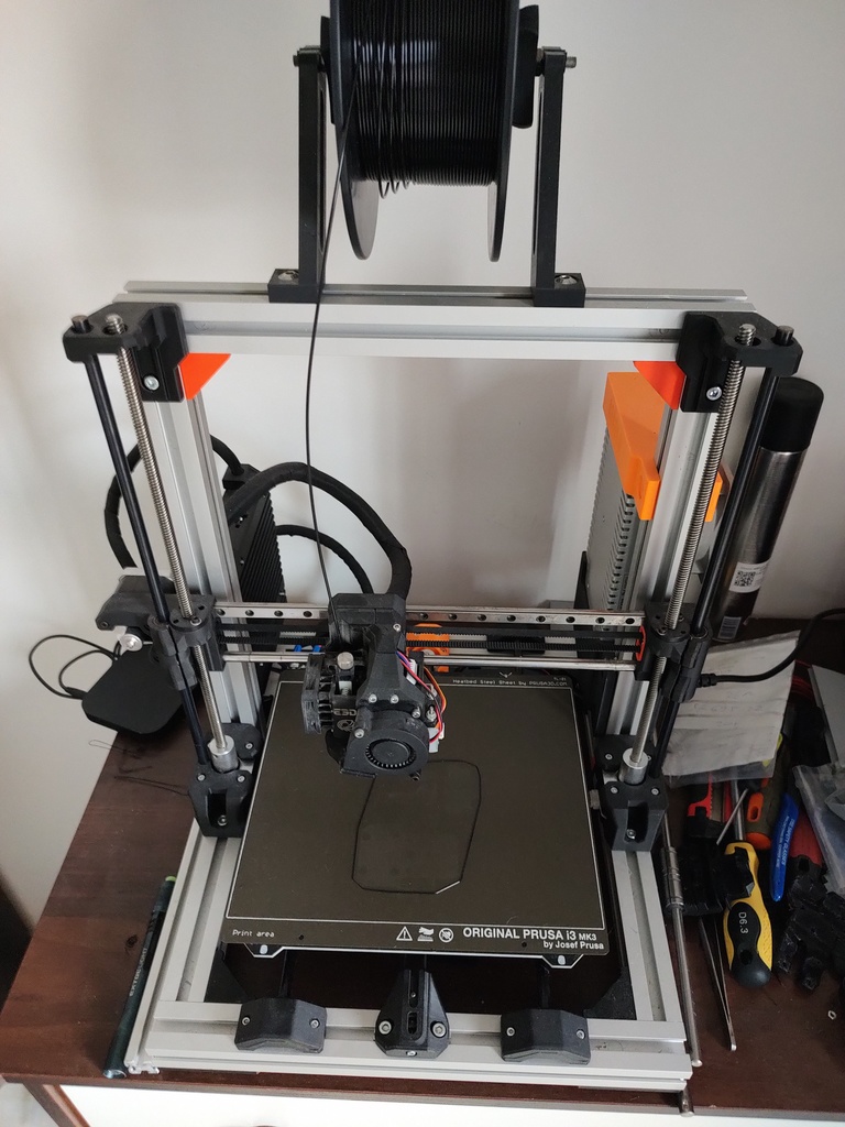 Prodám tiskárnu vlastní výroby. . Tisková plocha 250*210*230. Základní deska je duet 2 WiFi. Extruder originál E3D Hemera. Original y carriage a tiskový plát Průša. Na x ose lineární vedení mgn9. Zbytek kluzná ložiska Igus + kalené nitridovane tyče. Automatické vyrovnání podložky pomocí BL touch. Tiskne velmi pěkně. Díky extruderu s velmi krátkou dráhou bezproblemu tiskne nejměkčí TPU materiály. Rám z pevných profilů 30*30. Zdroj 24v