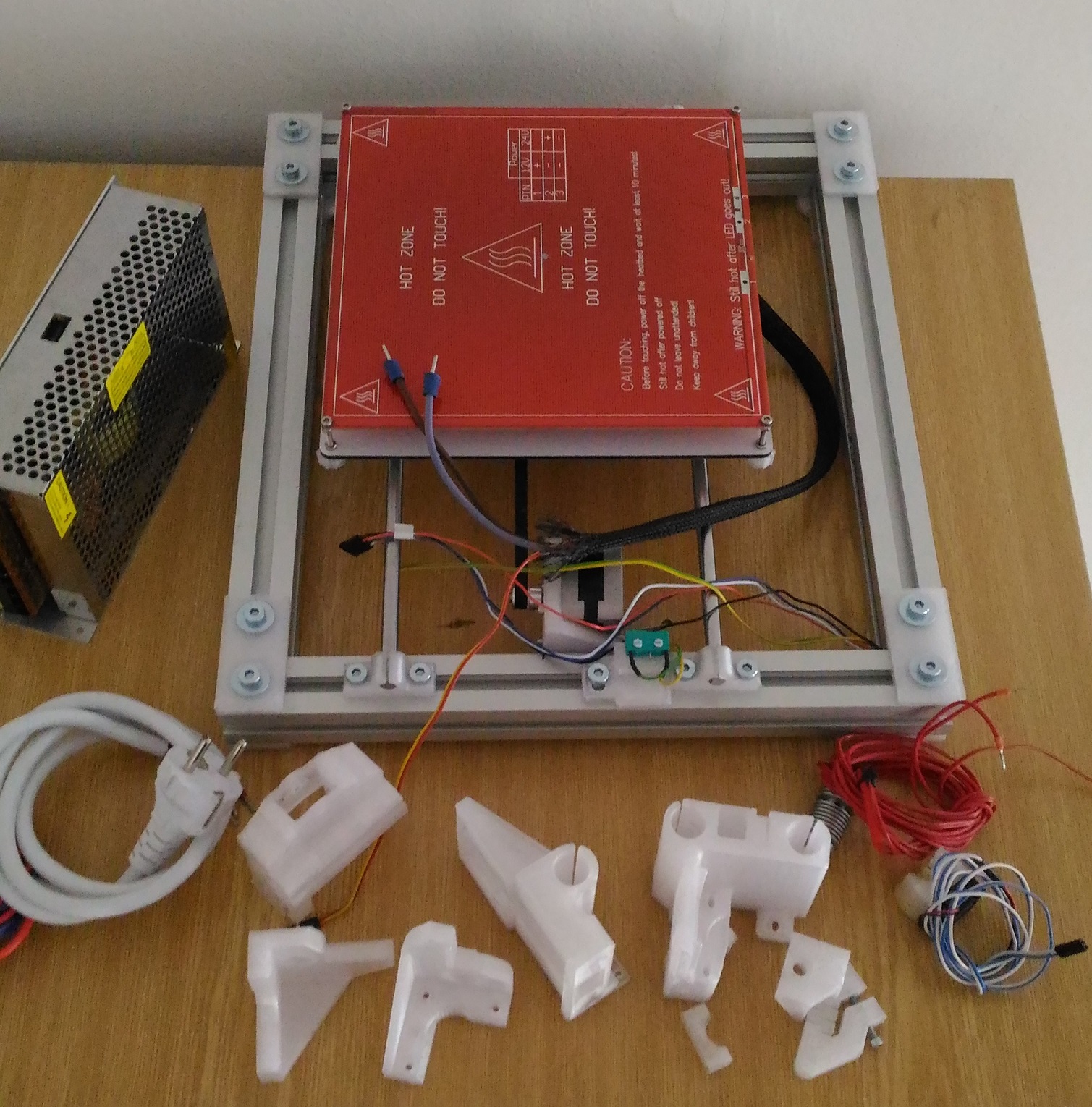 - komplet složený pojezd Y (rám, tyče, ložiska, motor, řemen, endstop, deska, HB....odmontoval jsem si akorát nožičky)
