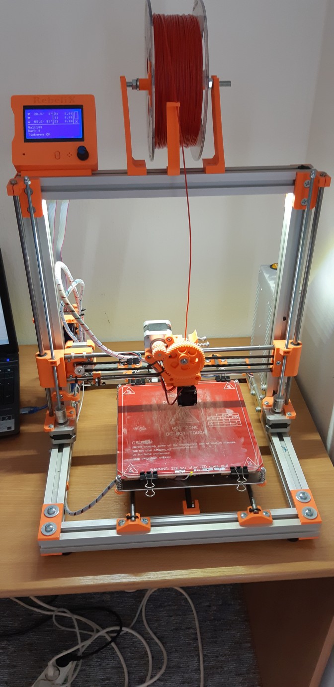 Prodám 3D tiskárnu RebeliX X2 (http://reprap4u.cz/navod-na-stavbu-3d-tiskarny-rebelix/). Masivní hliníková konstrukce, vyhřívaná podložka, osvětlení, displej - viz foto. K tiskárně přidám 3 role filamentu, náhradní díly a také notebook, který je na fotkách. Seřízena, lze tedy hned tisknout.