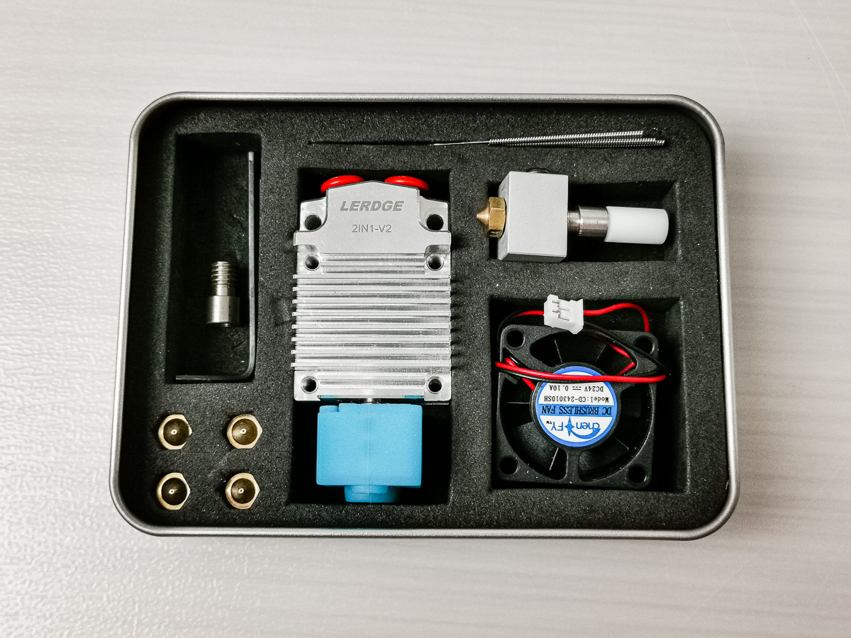 - duální extruder Lerdge 2IN1 V2 kit 24V - 300,-Kč (tenhle jediný je použitý, ale plně funkční)