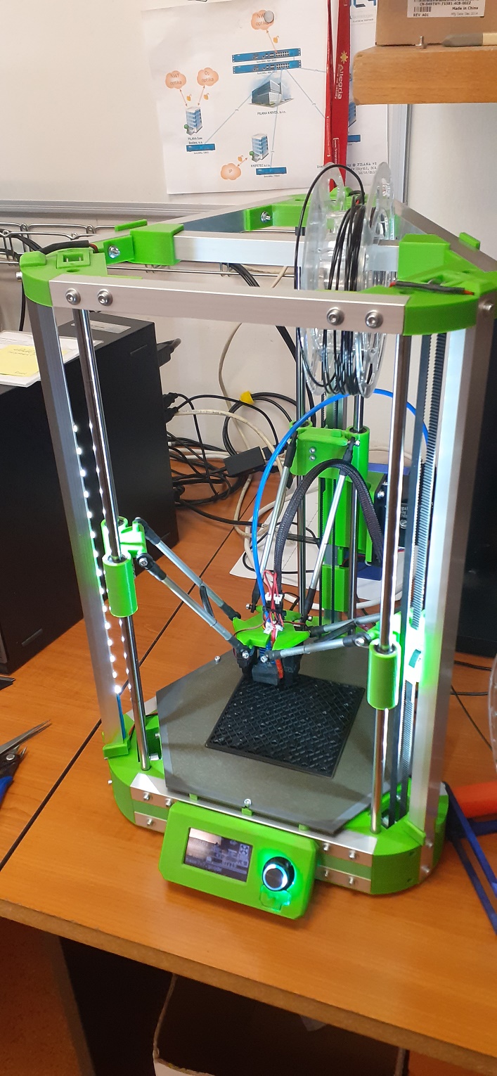 Tož po delší době se hlásím s tiskárnou. Je to Delta s tiskovým objemem 160x170mm, na stole zabere 320x300mm, výška 460mm. Zvládá rychlosti do 100mm/s. Mainboard je SKR Mini E3 v3.0, displej BTT Mini12864, motory 17HS4401 a extruder Titan Aero clone. Podrobnosti a STL na Thingiverse: https://www.thingiverse.com/thing:5537514 a na Printables: https://www.printables.com/cs/model/285221-c-mini-a-tiny-delta-printer.