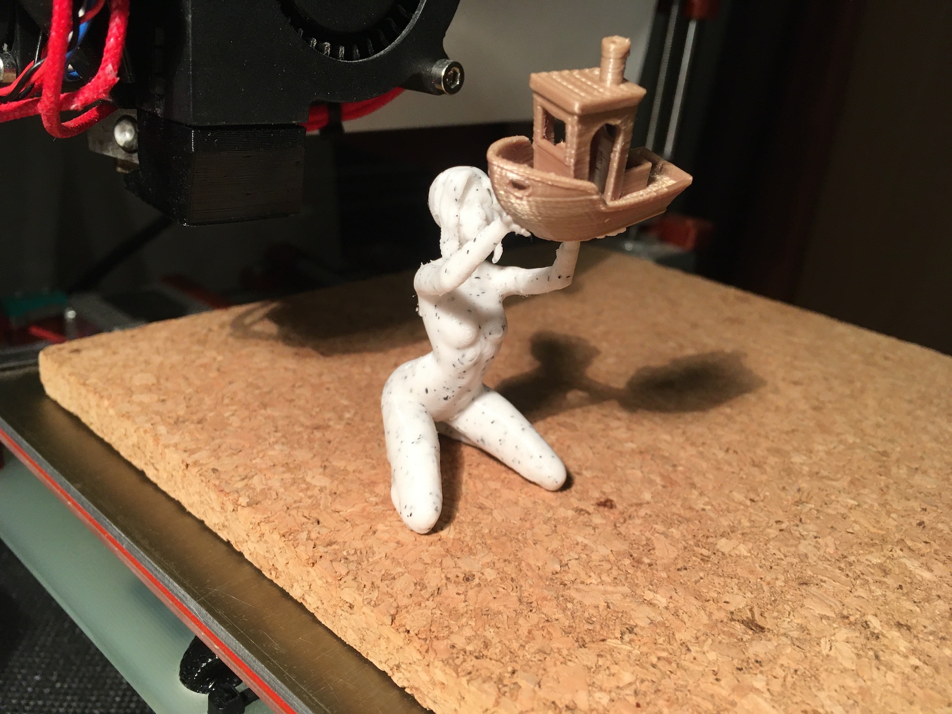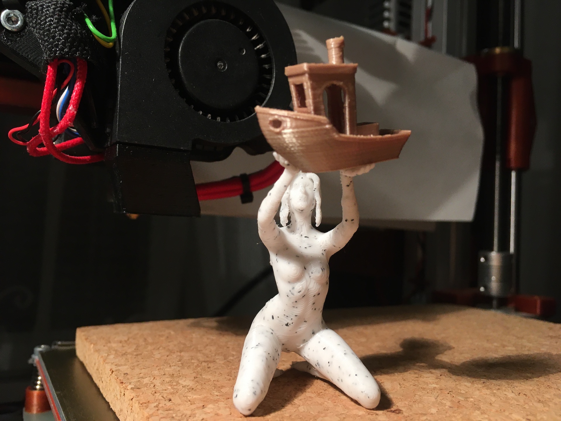 Verze pro E3D_V6 je odzkoušená a celkem funguje - tedy ze 3 E3D_V6 chladičů které mám doma se mi do něj jeden vešel, dalším dvou chyběl tak 1-1,5mm na průměru ve vybrání (na sílu by to asi šlo, ale to jsem nechtěl). Jinak, o víkendu jsem dokončil stavbu, nastavení firmware a první zkušební tisk kostky. V noci na dnešek jsem zkoušel tisk Benchy lodičky a super. Odpoledne až budu doma tak přidám fotky - ještě ale musím několik věcí dofinišovat (překrimpování kabelů motorů, úpravy vedení kabelů).