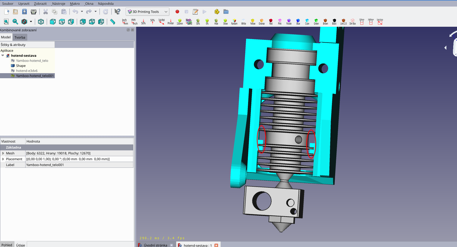 páč mám tady zbytky a jsem sběratel tiskáren :D tak, jak víš, se na to taky vrhám. Ovšem sotva jsem vytiskl držák na hotend, první chybka, nevejde se tam (zkoušel jsem z verze 1 i 2) :D . Nevím tedy, jakou verzi rebelmod hotendu jsi použil. Hodil jsem to i do CADu a krapet výstupek je níž, nic co bych nevyřešil, jen pro info.