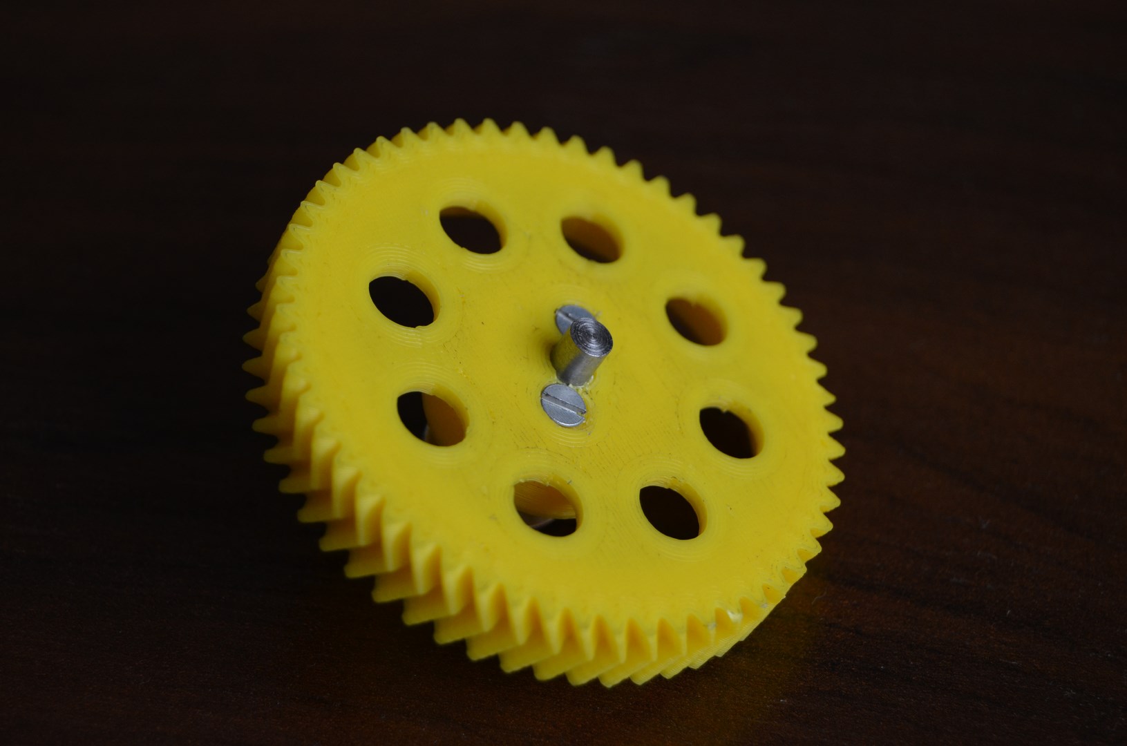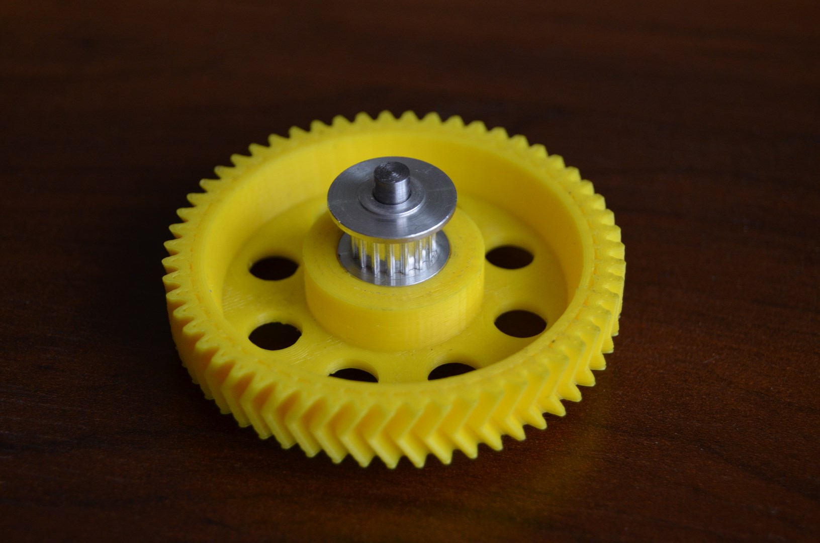 Do velkého ozubeného kola přijde vložit řemenice T2.5 do které jsem navrhl pro zajištění vyvrtat z čela 2 dírky a říznout M3 závit.